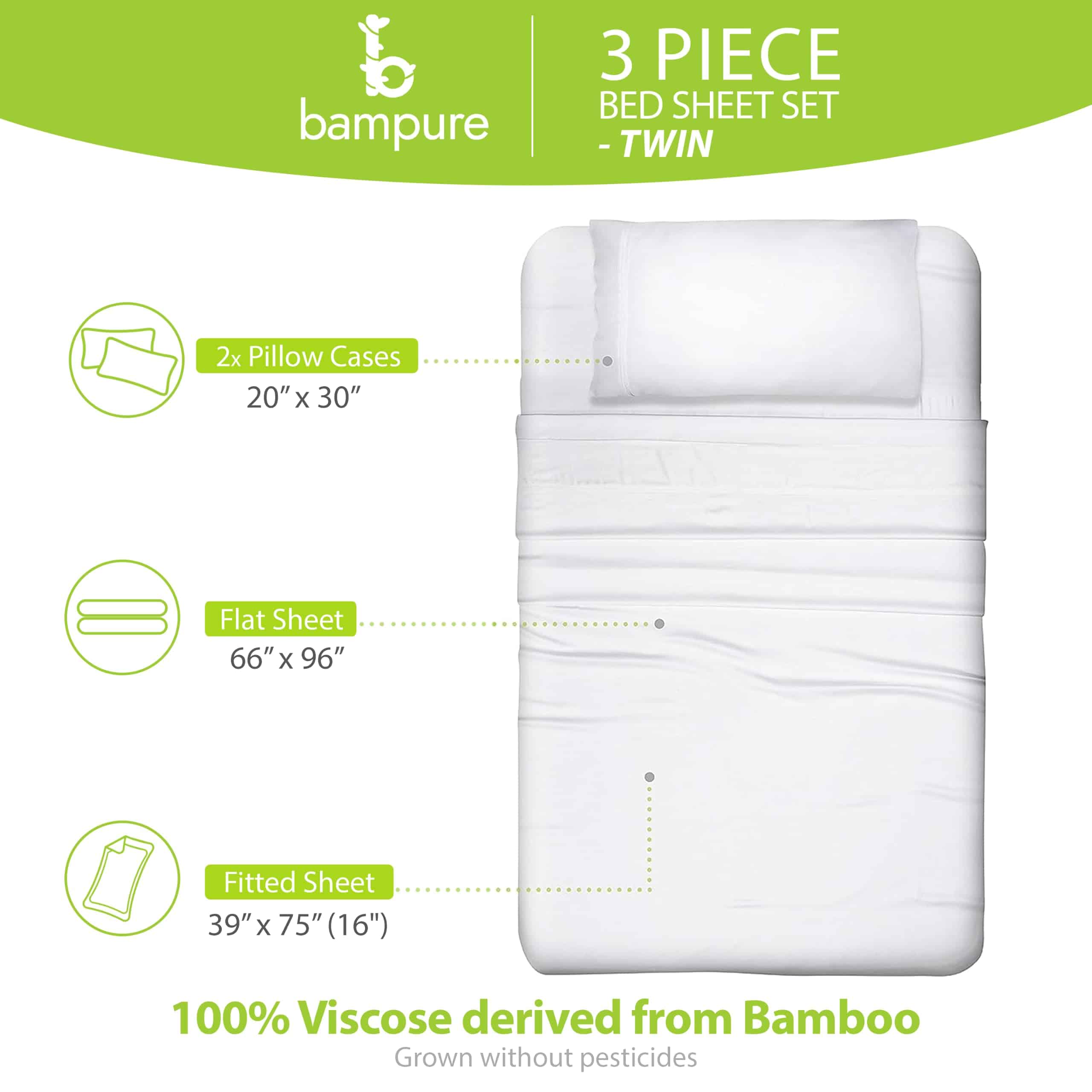 Juego de sábanas Twin BAMPURE 100% Viscosa derivada de