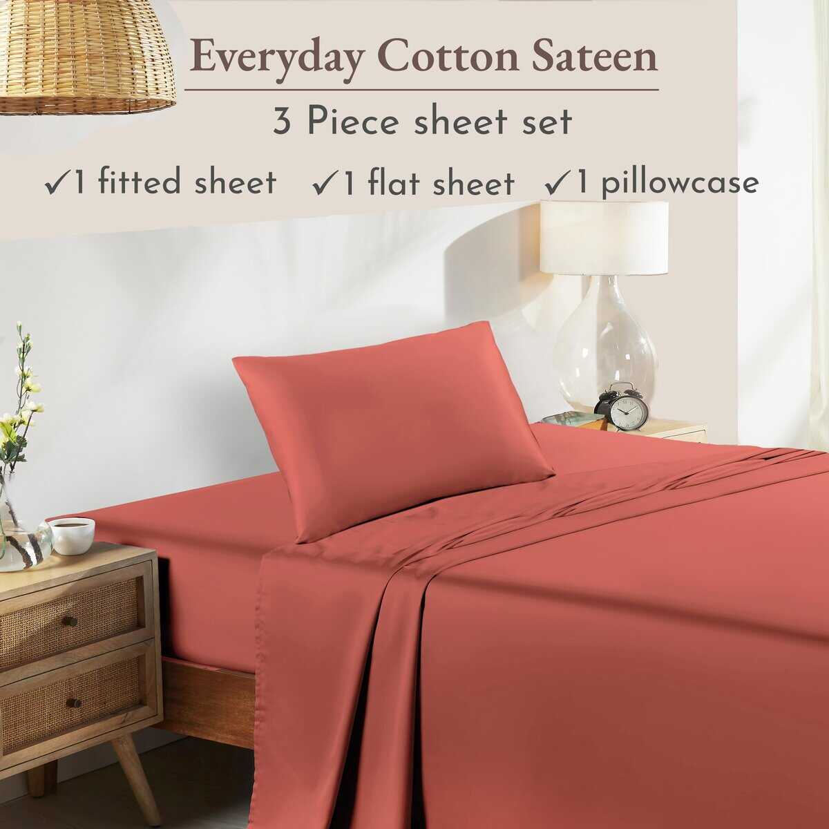 1. ¿Qué es: Juego de sábanas twin de 3 piezas fabricado con tela de satén de algodón 100% naturalmente cómoda. Estas sábanas y fundas de almohada suaves, transpirables y frescas están diseñadas para un confort duradero, durante todo el año.