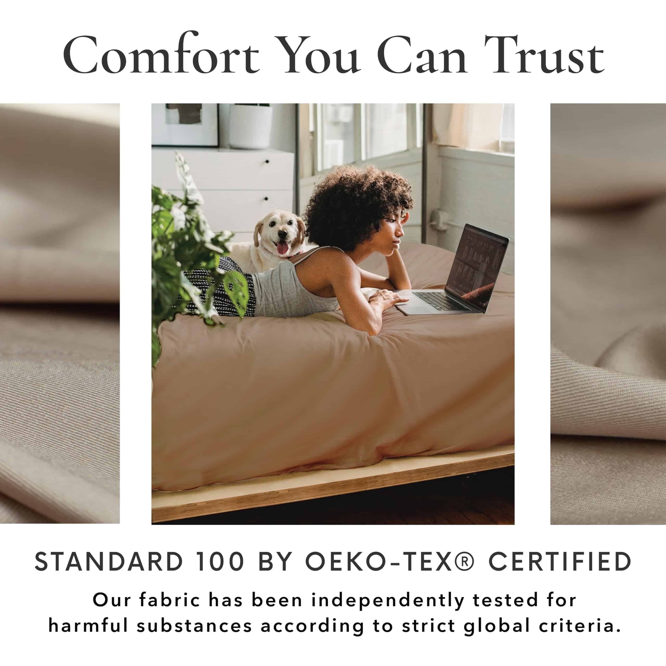 Transforma tu sueño con el Juego de Sábanas Twin de 6 Piezas Bamboo Bay, donde el lujo se encuentra con la funcionalidad. Imagina sumergirte en sábanas más suaves que el algodón egipcio o la seda, fabricadas con la mejor Viscosa de Bambú. Diseñadas pensando en los que duermen calientes, estas sábanas transpirables y que absorben la humedad te mantienen fresco y cómodo toda la noche, dejando atrás las noches inquietas. El set de 6 piezas incluye una sábana ajustable de bolsillo profundo, una sábana plana y cuatro fundas para almohadas extragrandes, todas diseñadas para adaptarse a colchones de hasta 16 pulgadas con un ajuste cómodo y seguro. Certificadas por OEKO-TEX para seguridad y fabricadas para resistir el encogimiento y la decoloración, estas sábanas son tan duraderas como respetuosas con el medio ambiente. Con orgullo de una pequeña empresa de EE. UU. fundada por veteranos, nuestro juego de sábanas twin está respaldado por una promesa de satisfacción de 180 noches y un soporte al cliente incomparable. Actualiza tu dormitorio hoy y experimenta lo último en suavidad, confort fresco y calidad confiable con el Juego de Sábanas Twin de 6 Piezas Bamboo Bay.