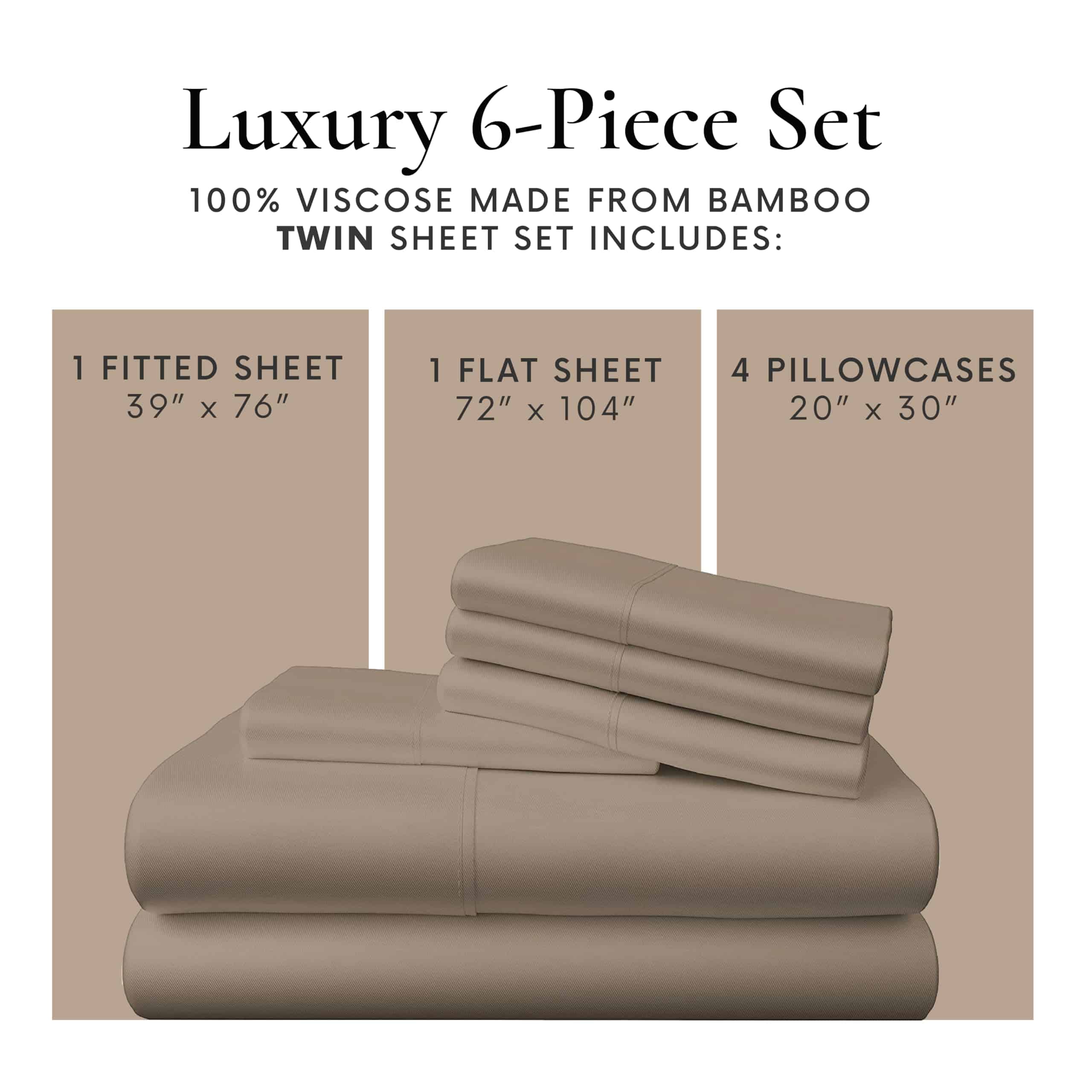 Juego de Sábanas Twin de 6 Piezas Bamboo Bay – 100% Viscosa
