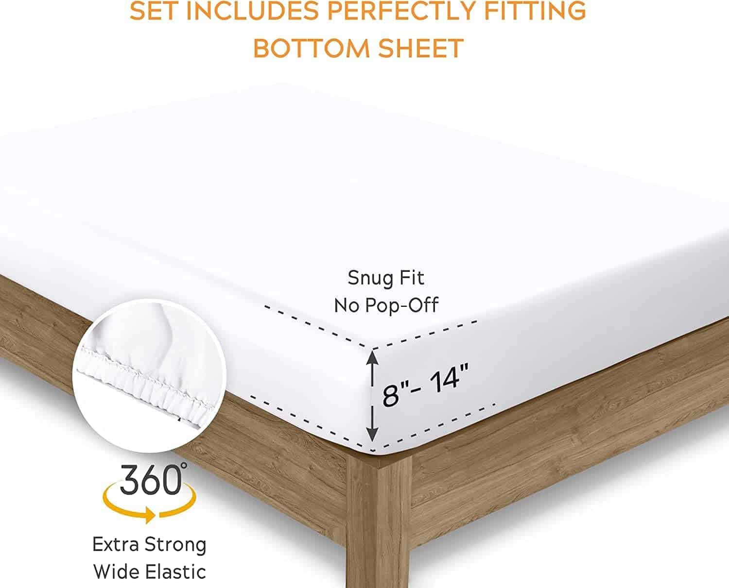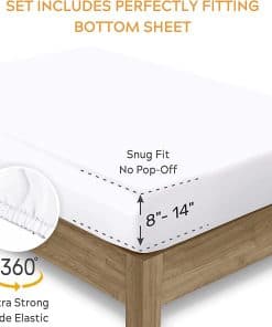 2. SUMÉRGETE EN SÁBANAS FRESCAS Y AÉREAS DE PERCAL – Frescas y nítidas al tacto, una colección ligera que te mantiene fresco en verano, a diferencia de las pesadas sábanas de algodón egipcio o satén. El juego Twin blanco puro incluye 1 sábana plana de 66″ W x 100″ L, 1 sábana ajustable elástica (39″ W x 75″ L + 14″ de bolsillo profundo) y 1 funda de almohada estándar (21″ W x 30″ L). Nuestra sábana ajustable tiene un ajuste extra ceñido y presenta etiquetas de cabeza/pie para facilitar su uso. El patrón de dobladillo de contraste añade un acabado elegante al juego de dormitorio.