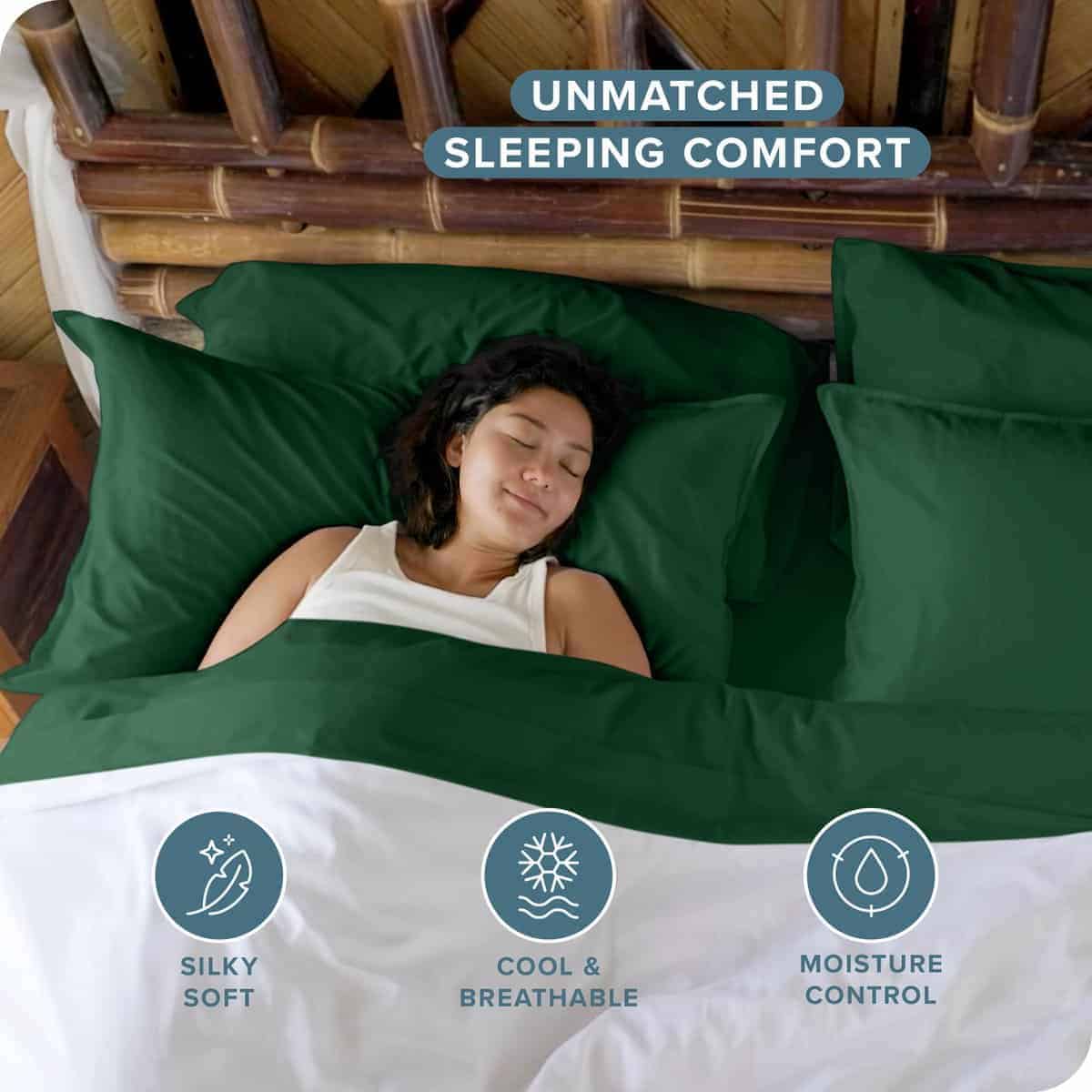 2. CALIDAD PREMIUM: Experimenta la máxima comodidad del rayón hecho de bambú. Con propiedades que absorben la humedad y regulan la temperatura, estas sábanas te permiten mantenerte fresco y seco. Y su textura sedosa solo mejora con cada lavado. Además, son extremadamente duraderas, minimizando la formación de bolitas, deshilachados y rasgaduras.