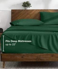 Juego de sábanas Twin XL Bare Home – Bolsillos -Verde Bosque