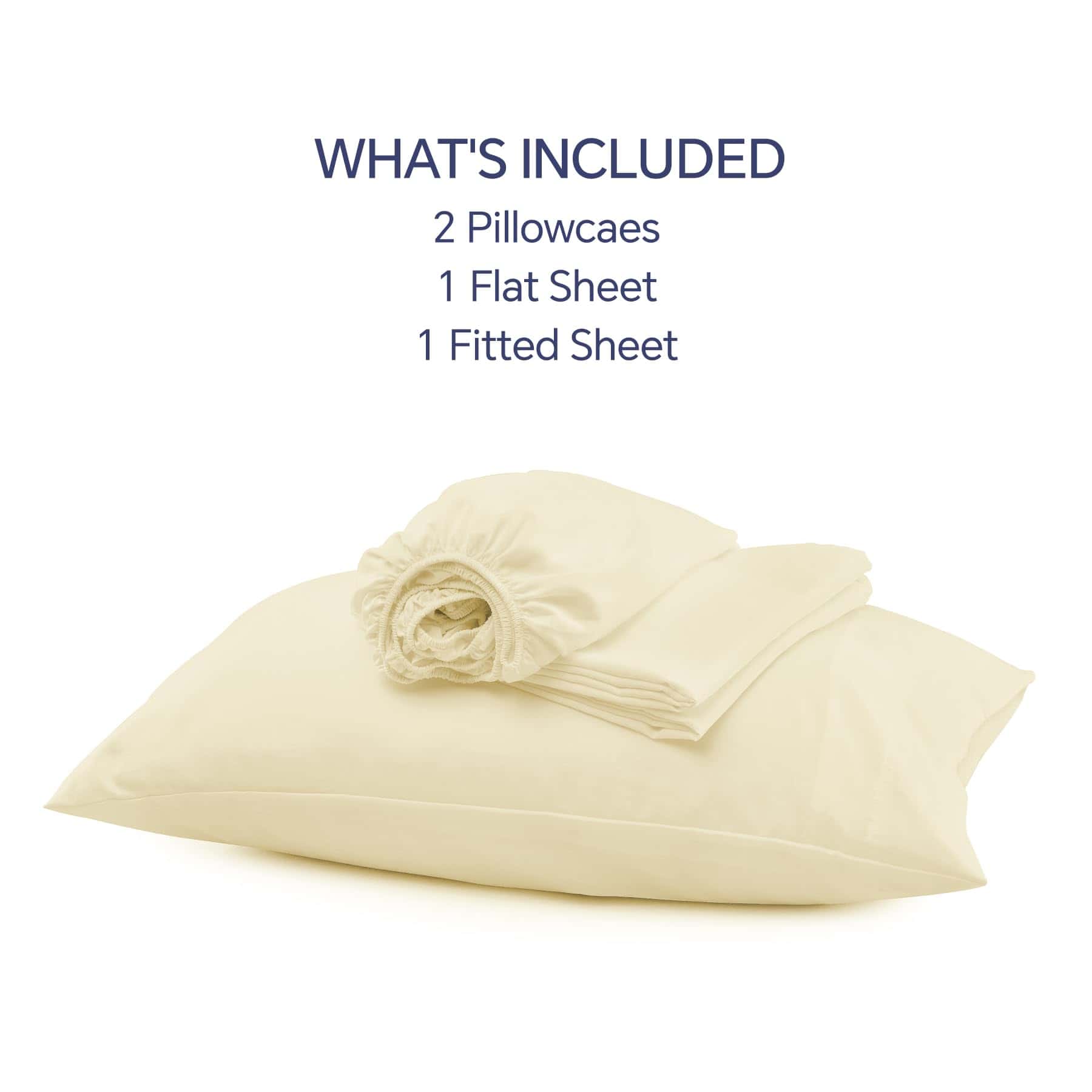 5. Lo que Obtienes: Este juego de sábanas Twin incluye una Funda de Almohada (20″ x 30″), una Sábana Plana (66″ x 96″), y una Sábana Ajustable (39″ x 75″)