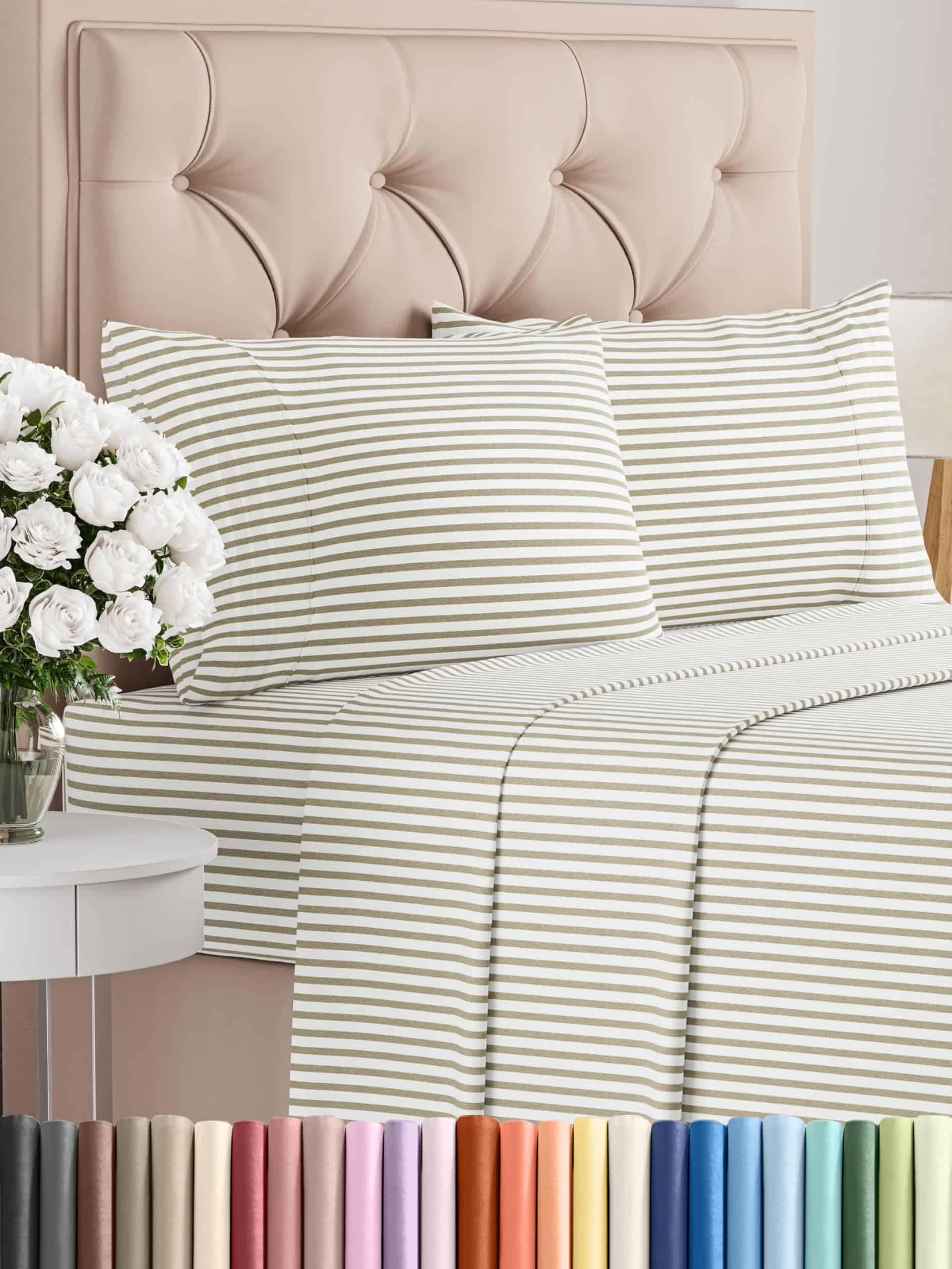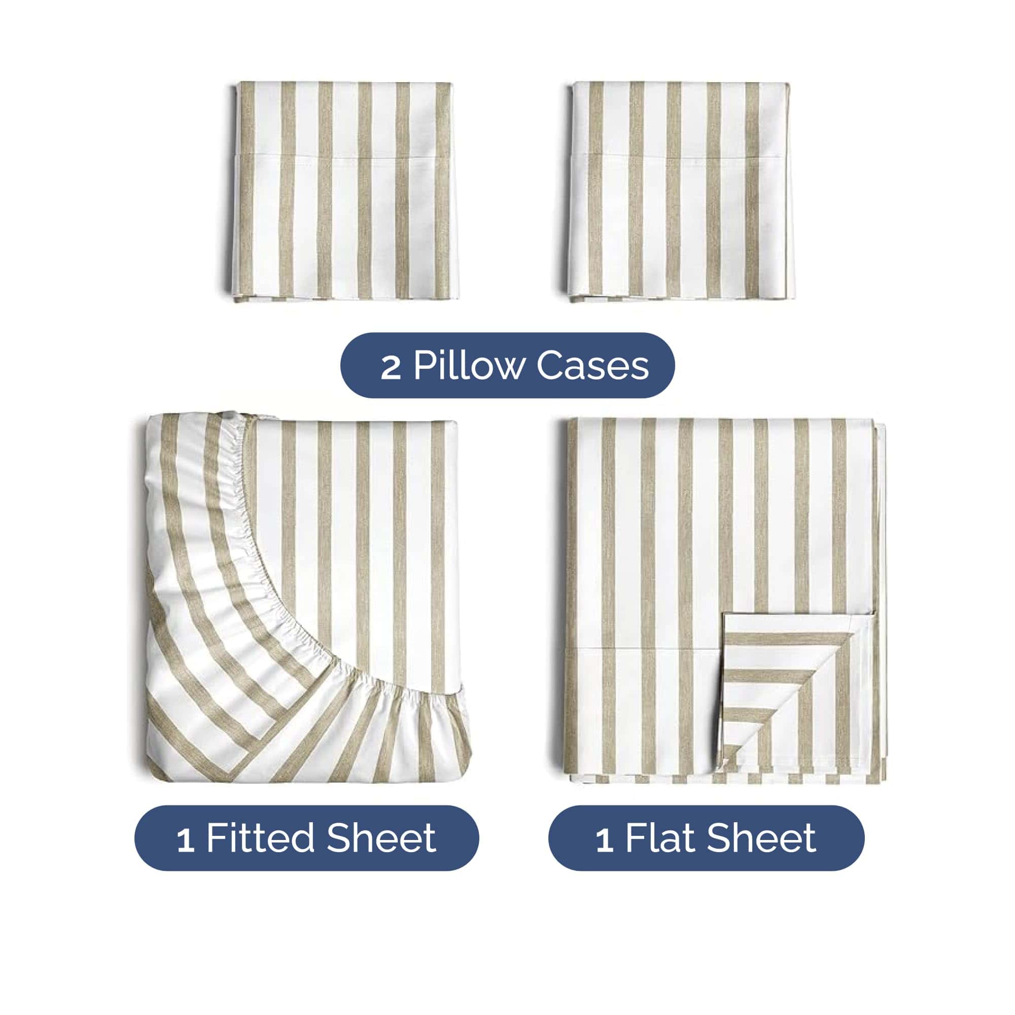 Juego de Sábanas Twin XL de 4 Piezas – Cómodas, -Beige Rayas