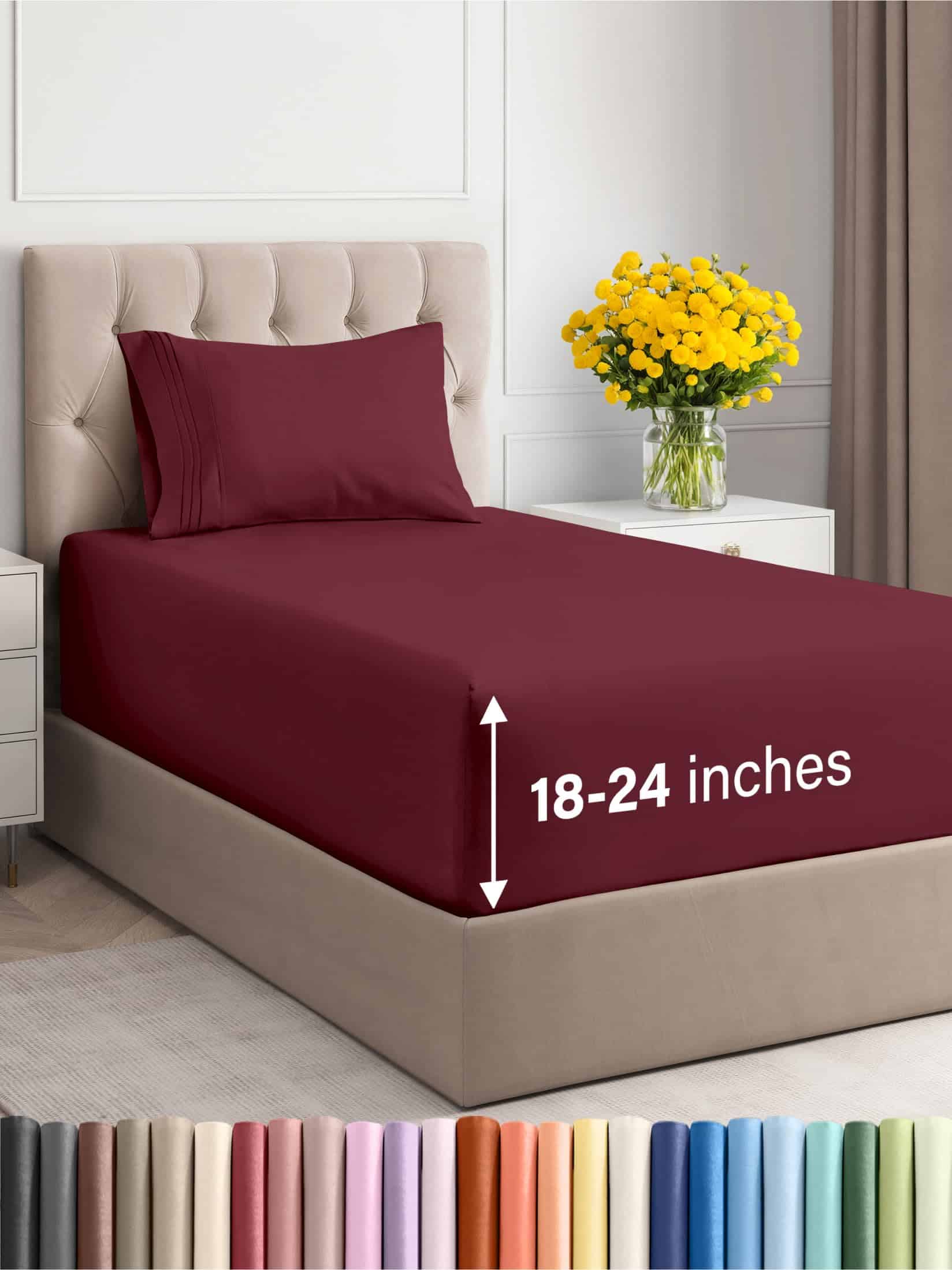Juego de sábanas Twin XL de bolsillo extra -Borgoña