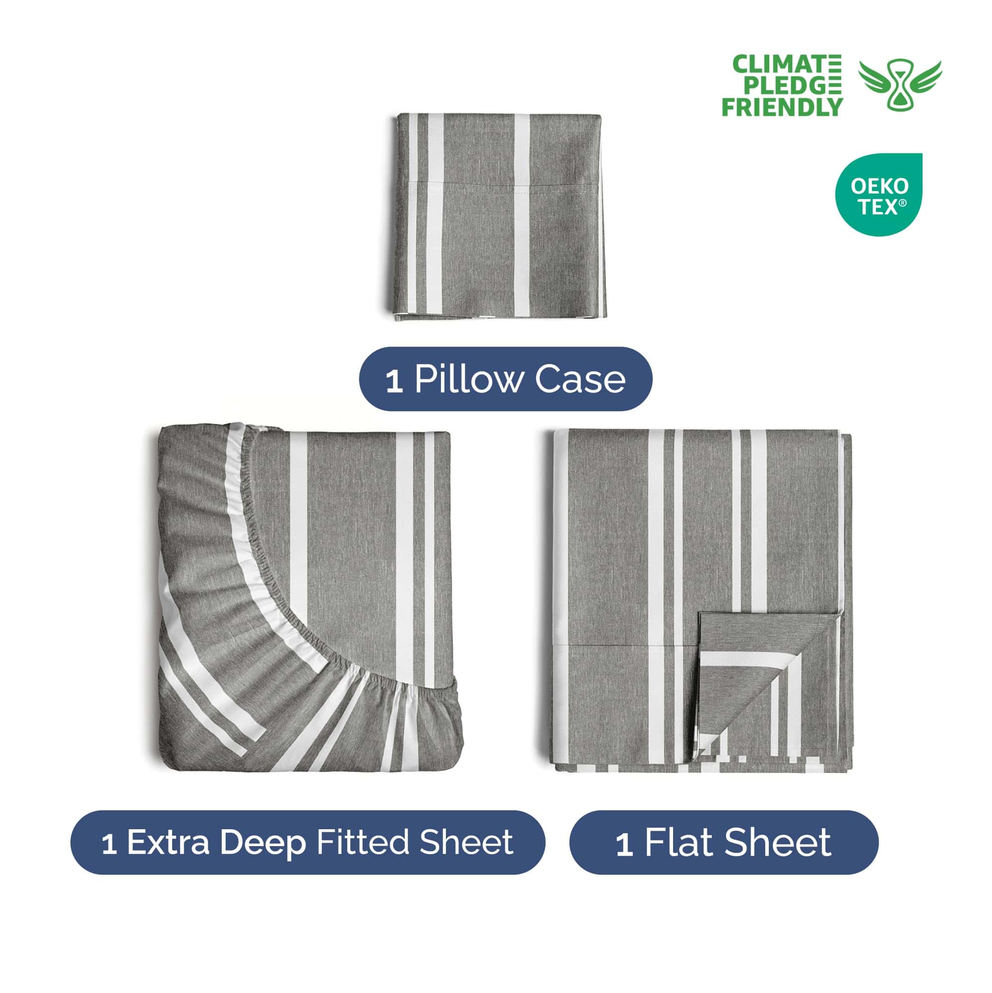 Juego de sábanas Twin XL de bolsillo extra -Gris a rayas