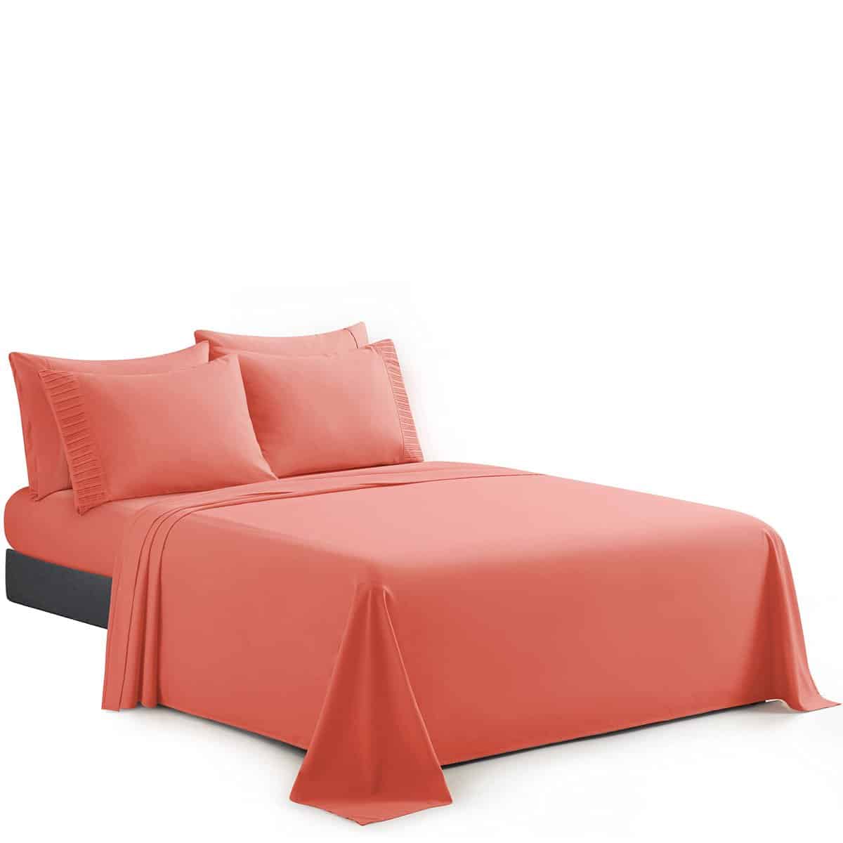 2. Tamaño y Dimensiones – Este tamaño individual/twin incluye 1 sábana plana de 66 x 96 pulgadas, 1 sábana ajustable de 39 x 75 + 15 pulgadas, 1 funda de almohada plisada de 20 x 30 pulgadas y 1 funda de almohada lisa adicional de 20 x 30 pulgadas.
