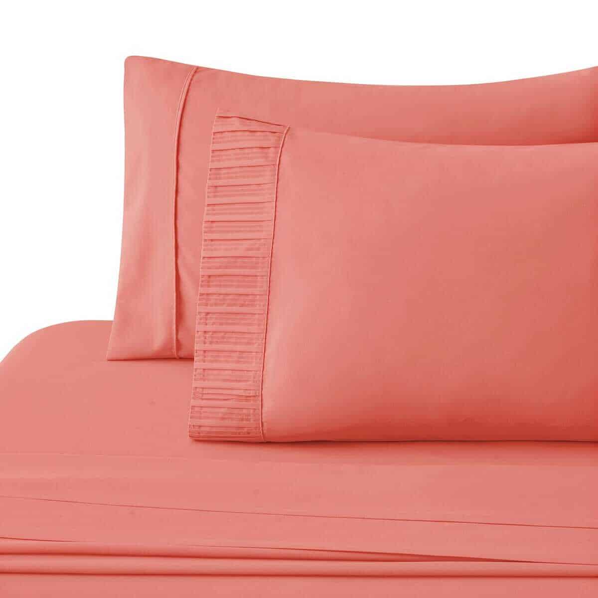 1. Diseño: Ropa de cama con diseño plisado en un extremo de la funda de almohada. Nuestro poliéster de doble cepillado de 120 GSM y rayón de bambú es suave y duradero, y cuenta con una trama transpirable.