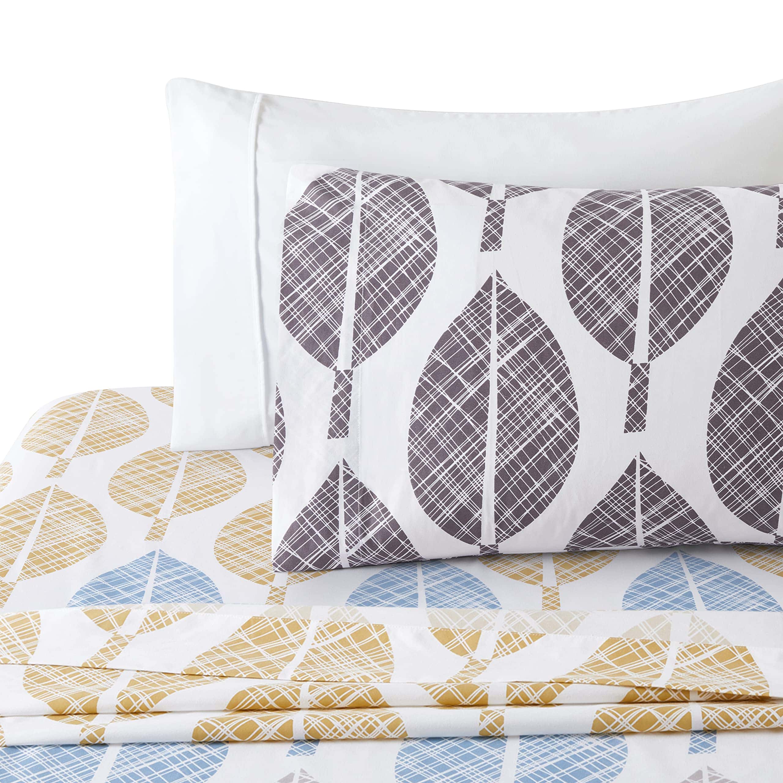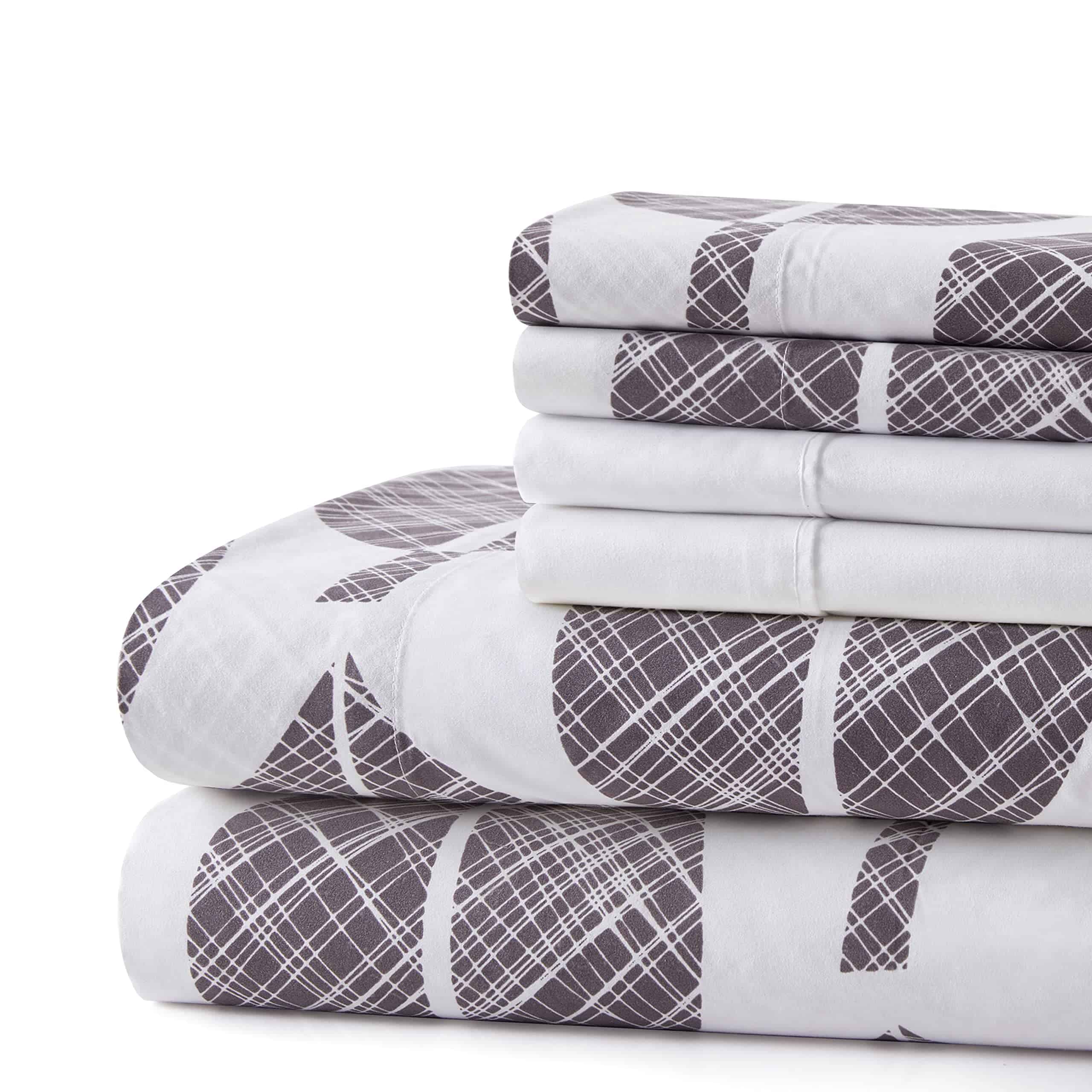 Este juego de sábanas en tamaño King está compuesto por 85% de poliéster y 15% de bambú. Las sábanas están hechas de un tejido ultra fino, suave y resistente a las arrugas. La sábana ajustable tiene bolsillos profundos y el set es durable, suave, libre de arrugas, resistente a la decoloración y hipoalergénico. Fácil de lavar a máquina en agua fría.