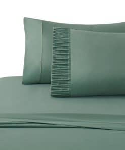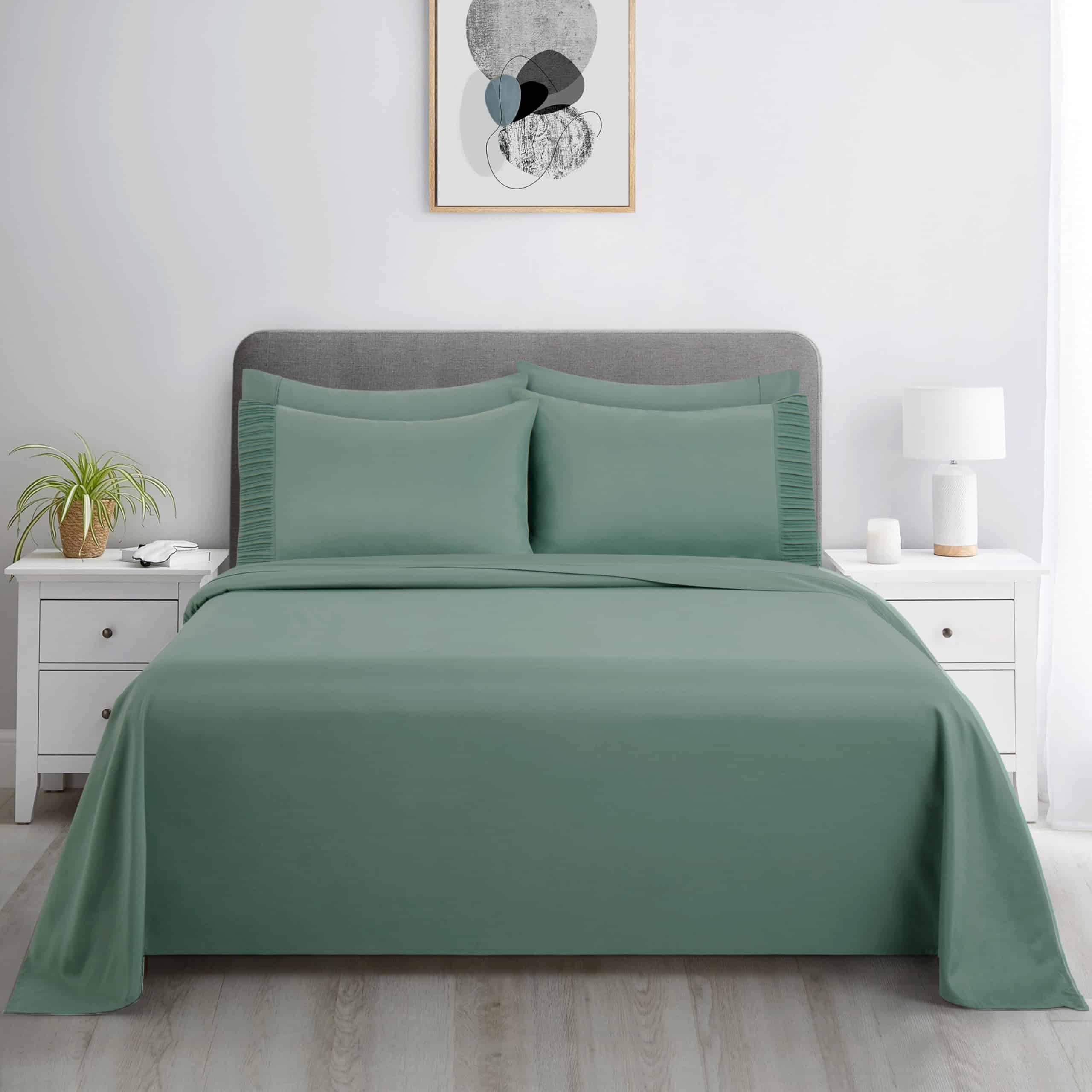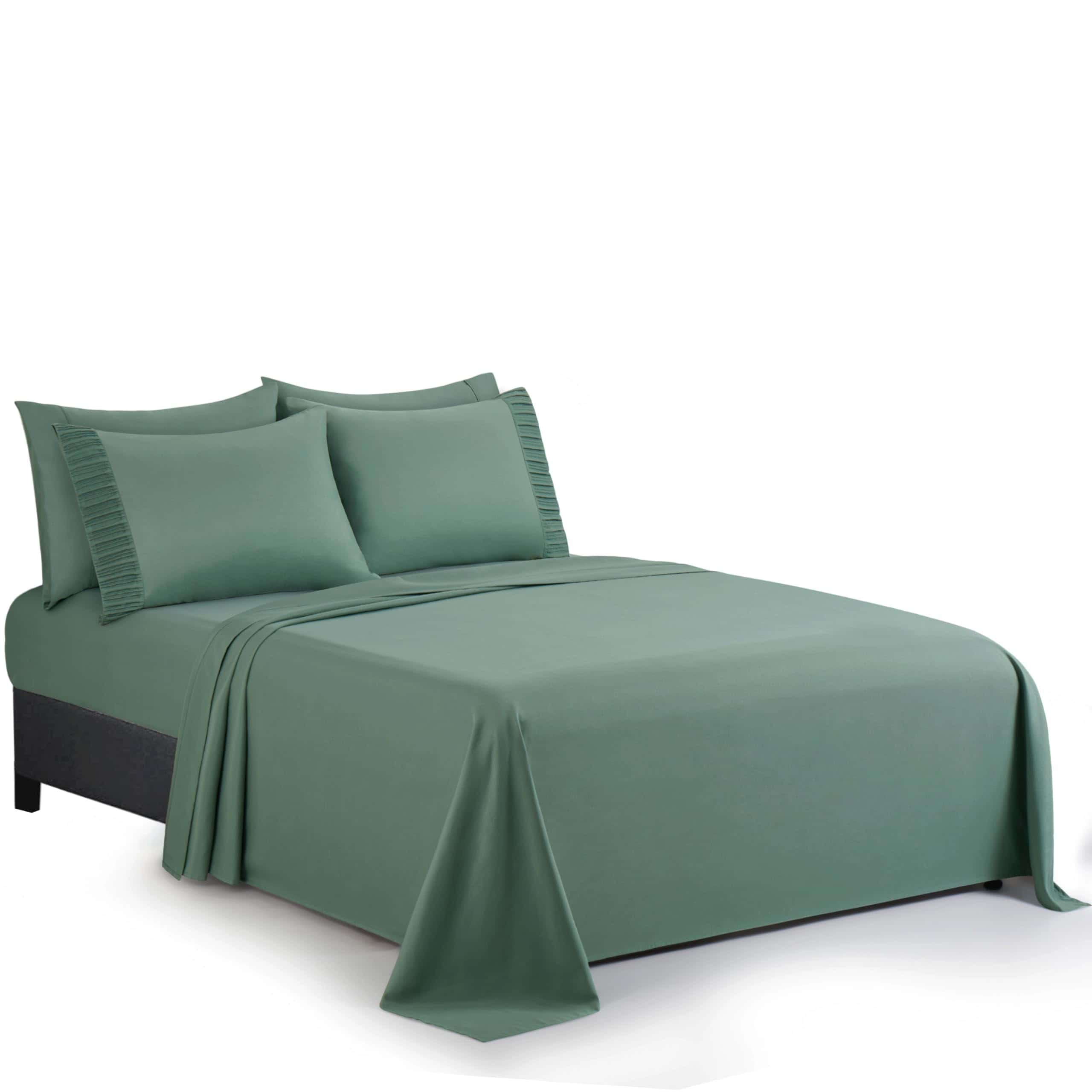 Este juego de sábanas de 6 piezas de tacto suave y sedoso está hecho de un tejido de doble cepillado de poliéster y bambú de rayón, lo que lo hace duradero y cómodo. El diseño plisado en las 2 fundas de almohada le da un toque elegante a la ropa de cama. El tamaño Queen incluye una sábana ajustable con bolsillo profundo que se adapta a colchones de hasta 16 pulgadas de grosor. El material de poliéster y bambú de rayón es resistente a las arrugas y se mantiene suave lavado tras lavado. Además, es hipoalergénico y transpirable, lo que lo hace ideal para personas con piel sensible. Este juego de sábanas viene empaquetado en una bolsa con cremallera para un almacenamiento conveniente. Disfruta de un sueño reparador y confortable con este juego de sábanas de alta calidad.