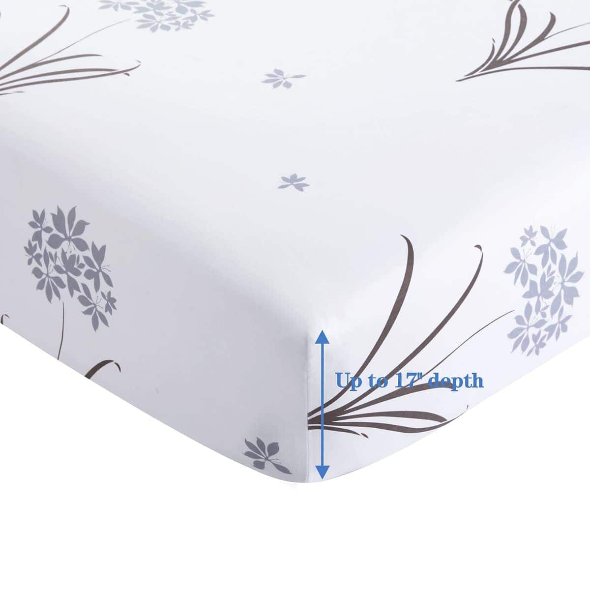 4. Características: La sábana ajustable de bolsillos profundos está completamente elástica y se adapta hasta 16 pulgadas. Duradero, sin formación de bolitas, súper suave, resistente a las arrugas, prelavado, resistente a la decoloración, hipoalergénico, transpirable. Hermosamente empaquetado en una bolsa con cremallera.