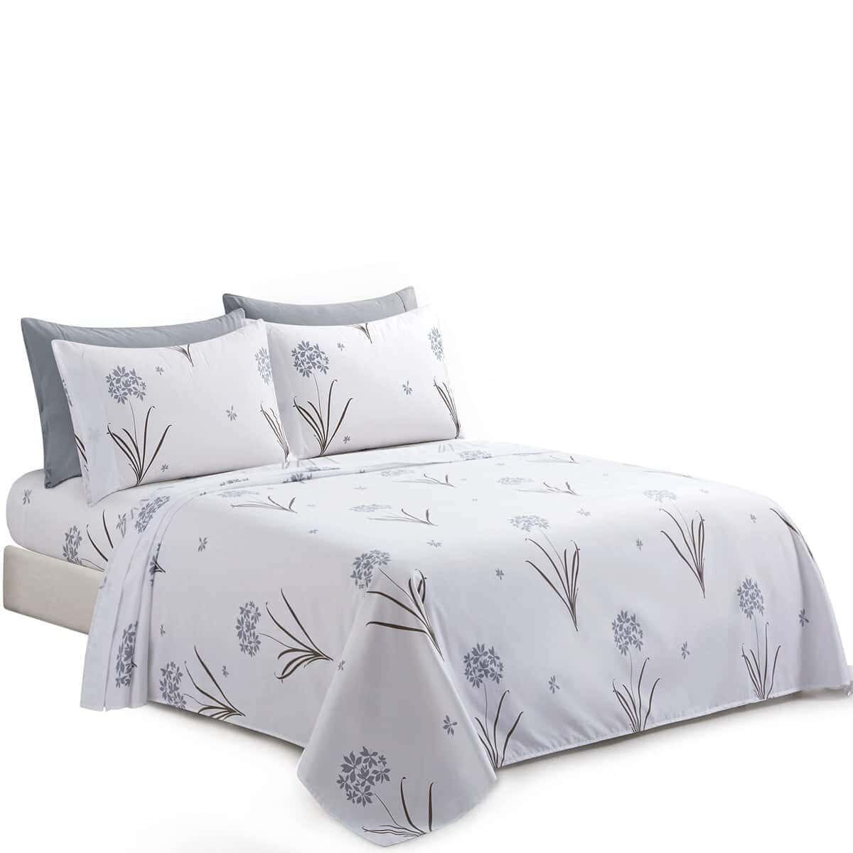 2. Tamaño y Dimensiones: Este juego de tamaño Queen incluye 1 sábana plana de 90 x 102 pulgadas, 1 sábana ajustable de 60 x 80 + 14 pulgadas, 2 fundas de almohada impresas de 20 x 30 pulgadas y 2 fundas de almohada lisas extras de 20 x 30 pulgadas.