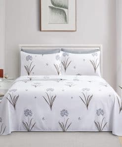 1. Diseño: Este moderno patrón de flores tiene una base blanca con flores grises y ramas decoradas en ella. Diseño a juego impreso en las 2 fundas de almohada. Nuestro poliéster de doble cepillado de 120 GSM y rayón derivado del bambú es suave y duradero y cuenta con un tejido transpirable.