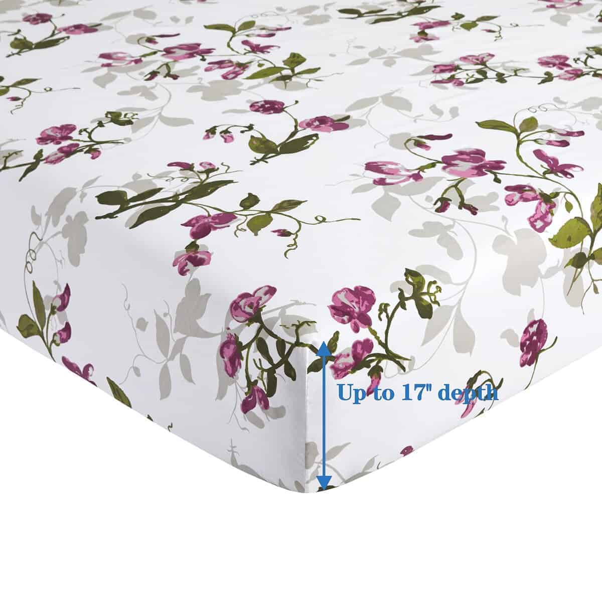 4. Característica – La sábana ajustable de bolsillos profundos es completamente elástica y se ajusta hasta 16 pulgadas. Duradero, sin formación de bolitas, súper suave, resistente a las arrugas, prelavado, resistente a la decoloración, hipoalergénico, transpirable. Hermosamente empaquetado en una bolsa con cremallera.