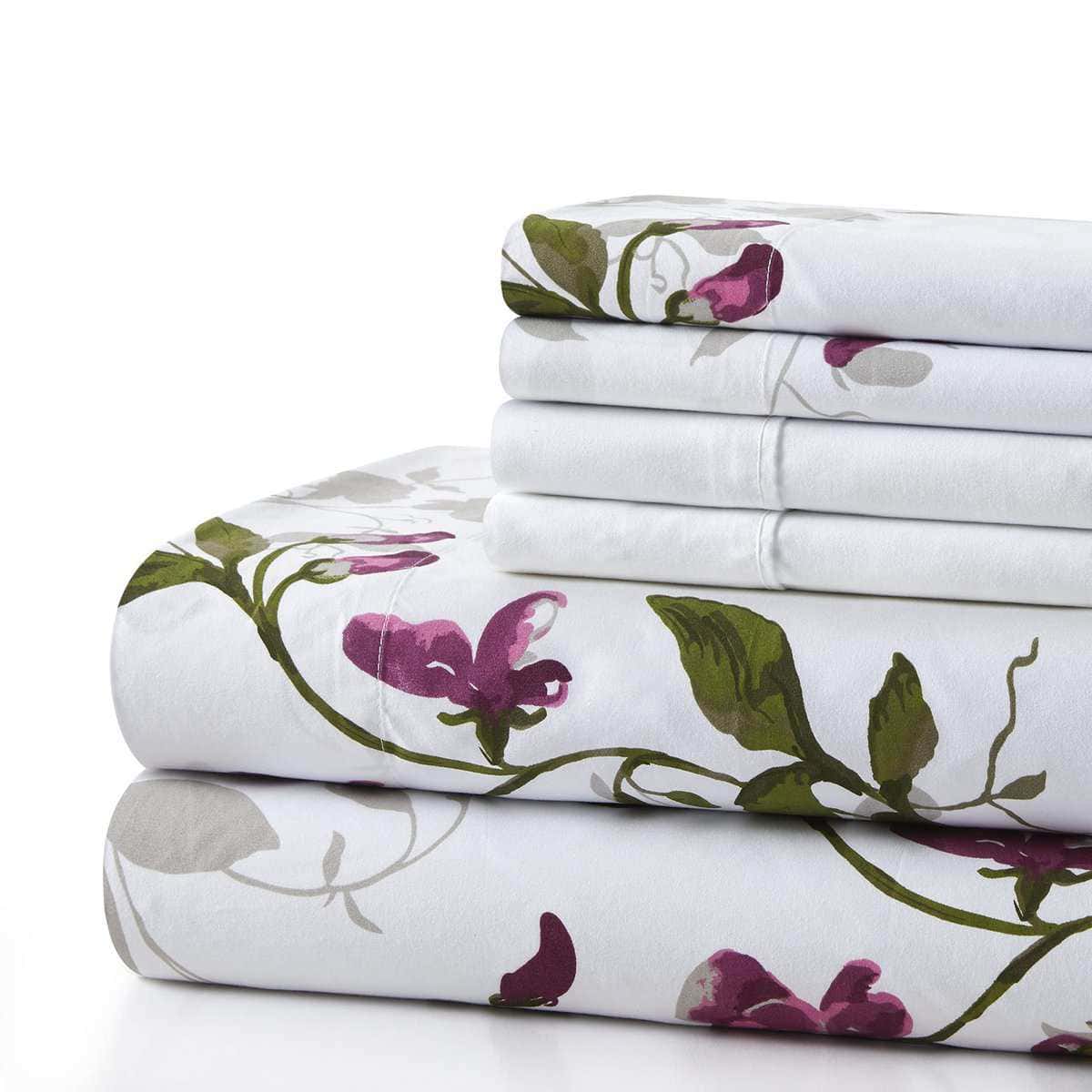 2. Tamaño y Dimensiones – Este tamaño doble/completo incluye 1 sábana plana de 81 x 96 pulgadas, 1 sábana ajustable de 54 x 75 + 15 pulgadas, 2 fundas de almohada estampadas de 20 x 30 pulgadas y 2 fundas de almohada lisas extra de 20 x 30 pulgadas.
