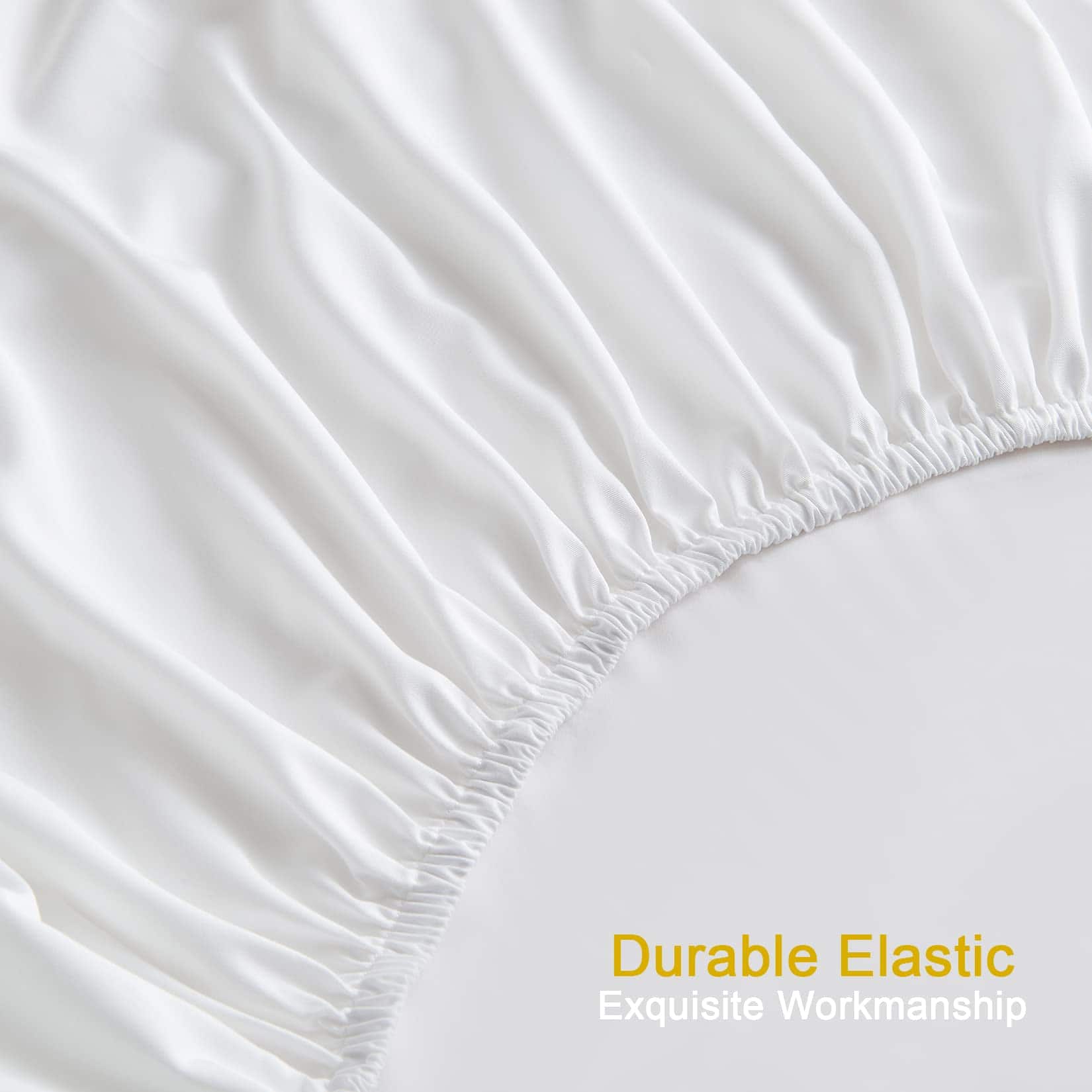 VASROY Juego de sábanas Cooling Breathable de fibras de celulosa regenerada: Este juego de sábanas VASROY está fabricado con fibras de celulosa regenerada, con un peso de 145 a 155 gramos (GSM) de fibra por metro cuadrado. La sábana proporciona una superficie cómoda para los durmientes, un tacto súper suave y ha pasado la certificación OEKO TEX, lo que significa que el producto es sano, respetuoso con el medio ambiente y no dañino para la piel. MANTENTE FRESCO: Este juego de sábanas fresco diseñado especialmente para personas calurosas tiene la función de absorción de humedad y eliminación de sudor, previniendo el sudor para que puedas mantenerte fresco durante todo el verano y disfrutar de un sueño más fresco y cómodo en las noches calurosas. Las sábanas hacen que dormir sea fácil, eliminan la fatiga y restauran instantáneamente la vitalidad. LUJO ASEQUIBLE: Nuestro juego de sábanas de 4 piezas incluye una sábana de 66 «x 96″, una sábana ajustable de 39» x 75 «x 16″, una funda de almohada de 20» x 30 «. Los bolsillos profundos son adecuados para colchones de hasta 16» (aproximadamente 40,6 cm) de profundidad. Estas sábanas se sienten y ajustan mejor que cualquier otro juego de sábanas. No importa cómo te muevas en la cama, no se deslizarán, proporcionándote una noche de sueño perfecta y tranquila, una combinación ideal de funcionalidad y calidad! FÁCIL DE LAVAR Y CUIDAR: A diferencia de las sábanas de seda clásicas, las sábanas son duraderas y lavables a máquina. Lava las sábanas suavemente con agua fría y sécalas a baja temperatura. Para evitar arrugas, saca las sábanas de la secadora y ponlas en la cama lo antes posible. Además, evita el uso de suavizantes y blanqueadores. GARANTÍA DE CALIDAD: El estilo de sábanas elegantes de moda es la mejor elección para tu hogar. Si no estás satisfecho con las sábanas, háznoslo saber en cualquier momento y te responderemos lo más satisfactoriamente posible.