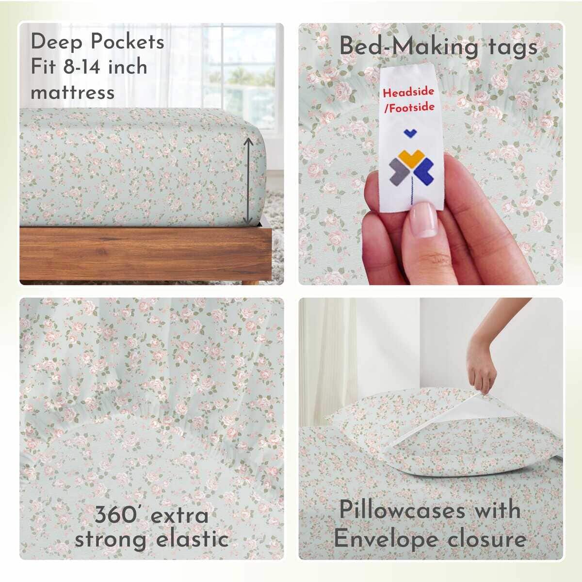 Descubre la combinación perfecta de estilo y comodidad con nuestros juegos de sábanas estampadas. Si buscas añadir un toque de personalidad a tu ropa de cama, ¡nuestros juegos de sábanas estampadas de sarga de algodón 100% son la solución perfecta! Estas sábanas no solo son increíblemente cómodas, sino que los estampados claros y bien definidos te permiten expresar tu estilo personal de una manera sutil pero impactante. Creemos que la ropa de cama debe ser elegante y práctica, por eso nuestras sábanas estampadas cumplen con los más altos estándares de calidad y durabilidad. El tejido naturalmente lujoso y suave proporciona un sueño confortable, mientras que los colores vibrantes y duraderos resisten la decoloración con el lavado. Hecho del mejor algodón de sarga, nuestros juegos de sábanas estampadas presentan una excepcional calidad de impresión. El tejido de trama ajustada crea un lienzo ideal para bellos y equilibrados estampados sin errores de impresión o patrones llamativos. Nuestros juegos de sábanas estampadas de 4 piezas para Queen, King y California King vienen con bolsillos profundos de 14 pulgadas, que se ajustan a colchones de 8 a 14 pulgadas de profundidad. Los juegos de sábanas estampadas de 3 piezas para Twin y Twin XL vienen con bolsillos de 12 pulgadas de profundidad, que se ajustan a colchones de 8 a 12 pulgadas de profundidad. El elástico fuerte y seguro garantiza que tus sábanas permanezcan en su lugar durante toda la noche, manteniendo su ajuste incluso después de años de uso. Eleva tu ropa de cama con nuestras sábanas estampadas, que cuentan con una variedad de florales y rayas divertidos. Muestra tu personalidad y añade un toque de color a tu dormitorio con estos elegantes y prácticos juegos de sábanas.