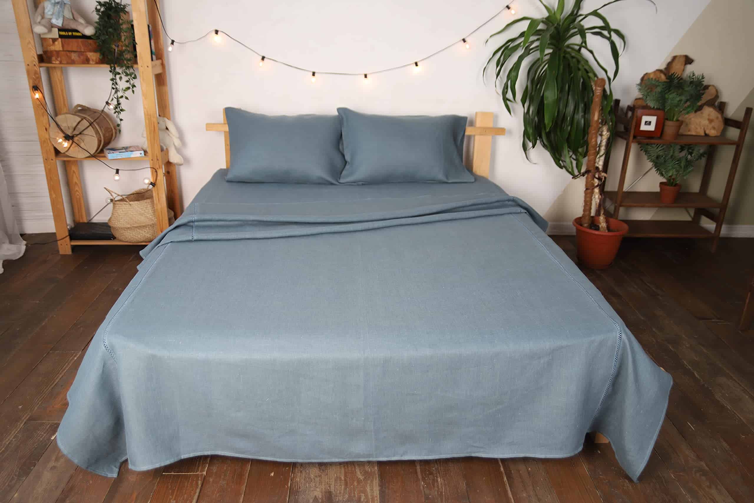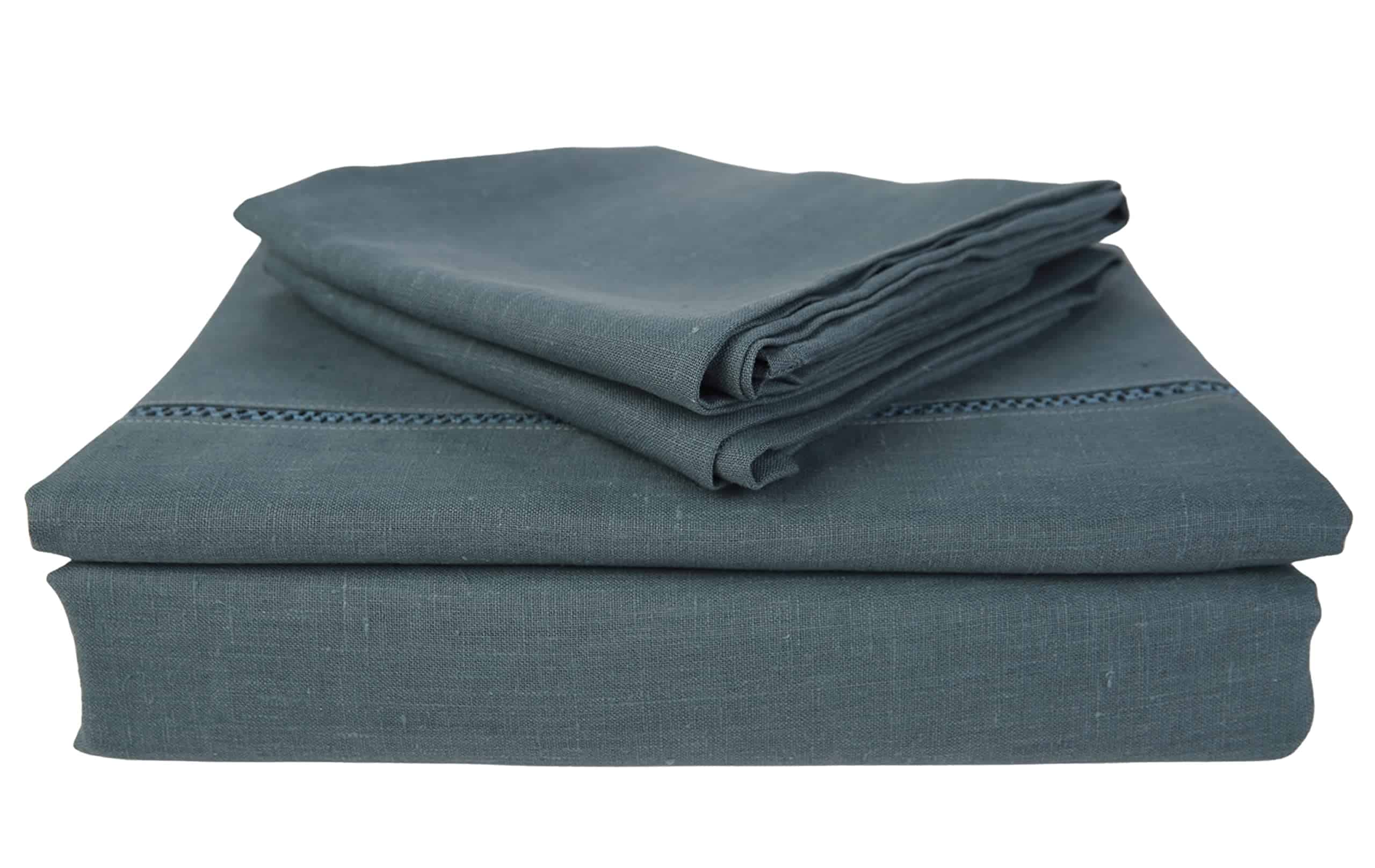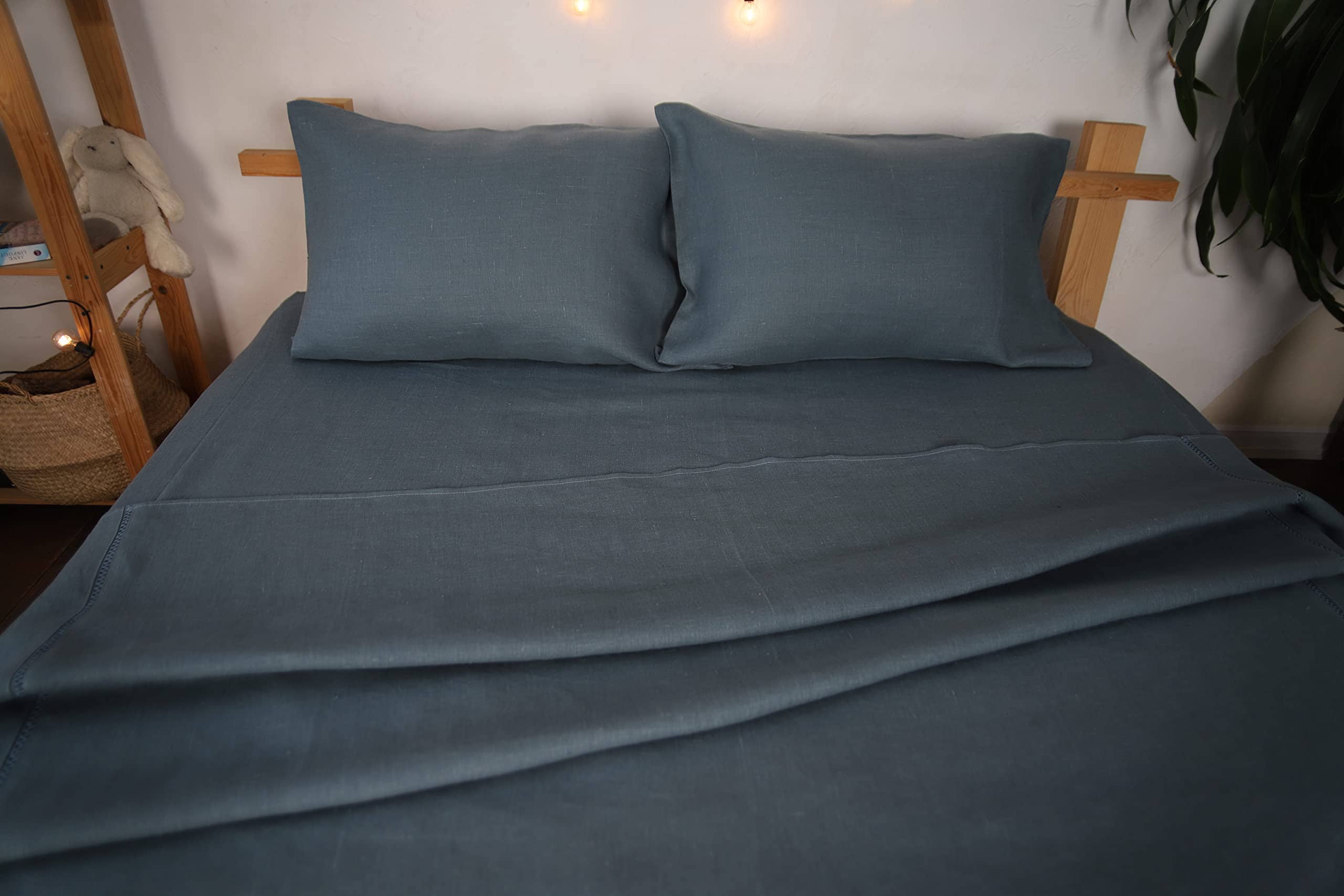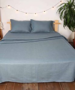 Juego de Sábanas y Fundas de Almohada de Lino -Azul Laguna