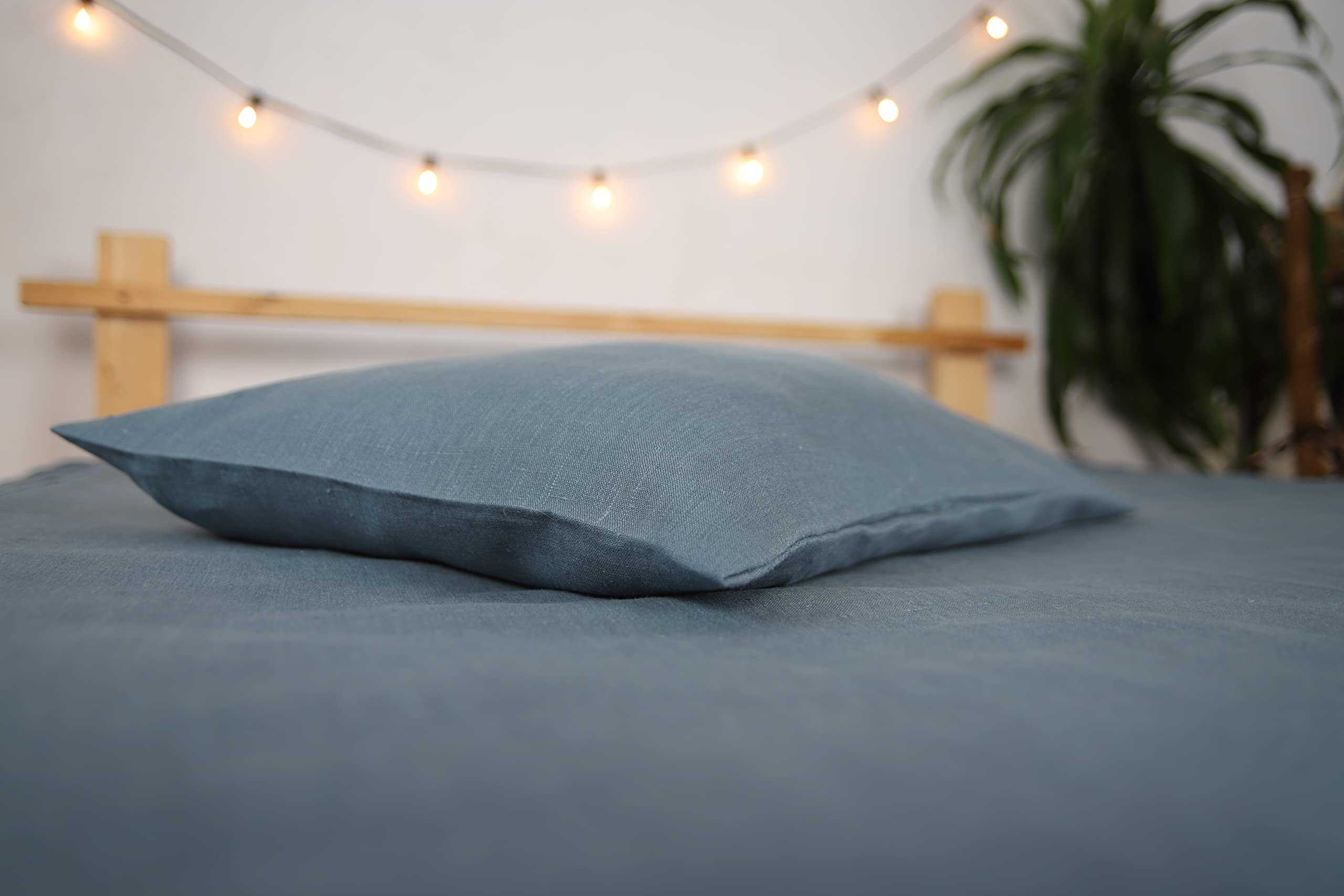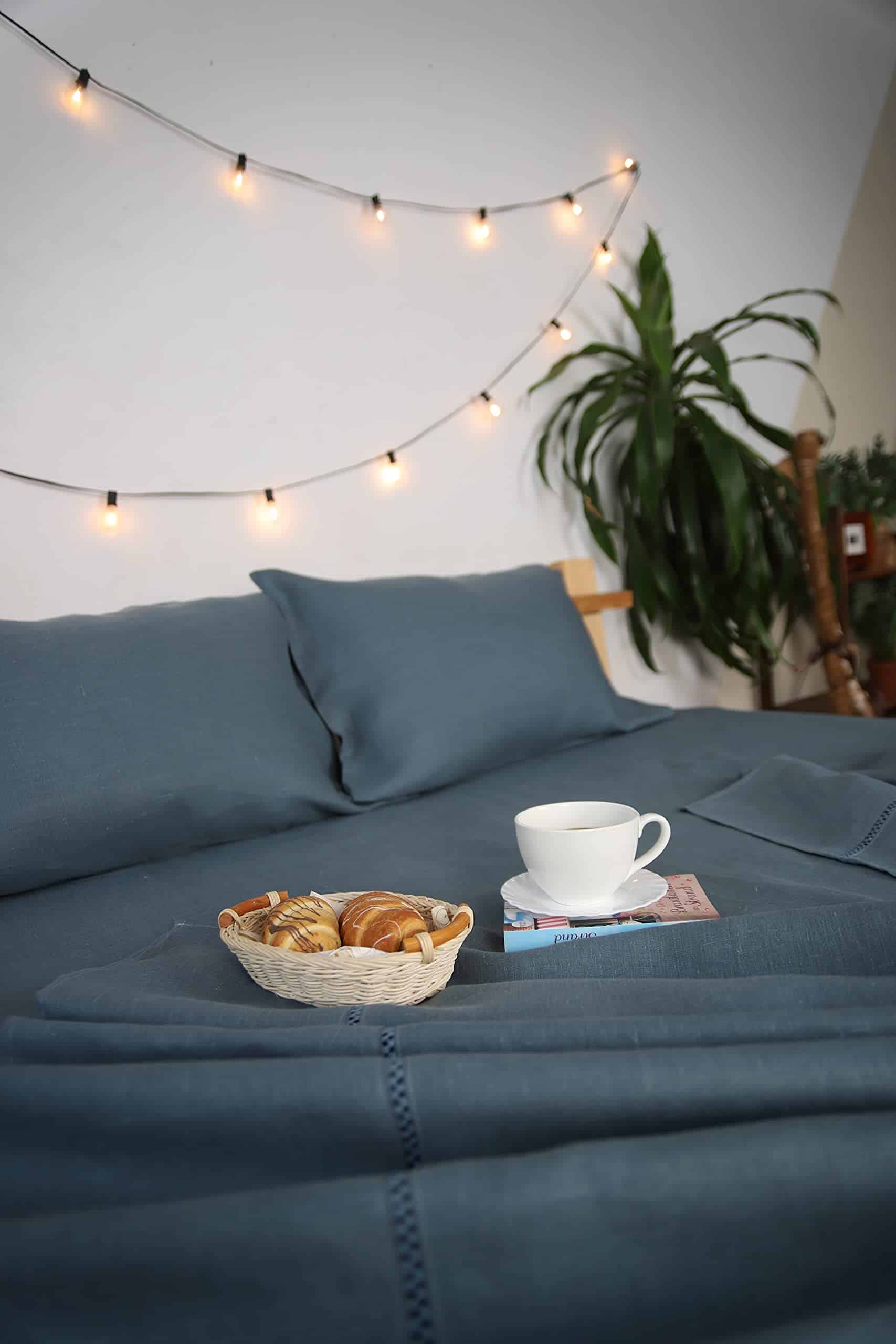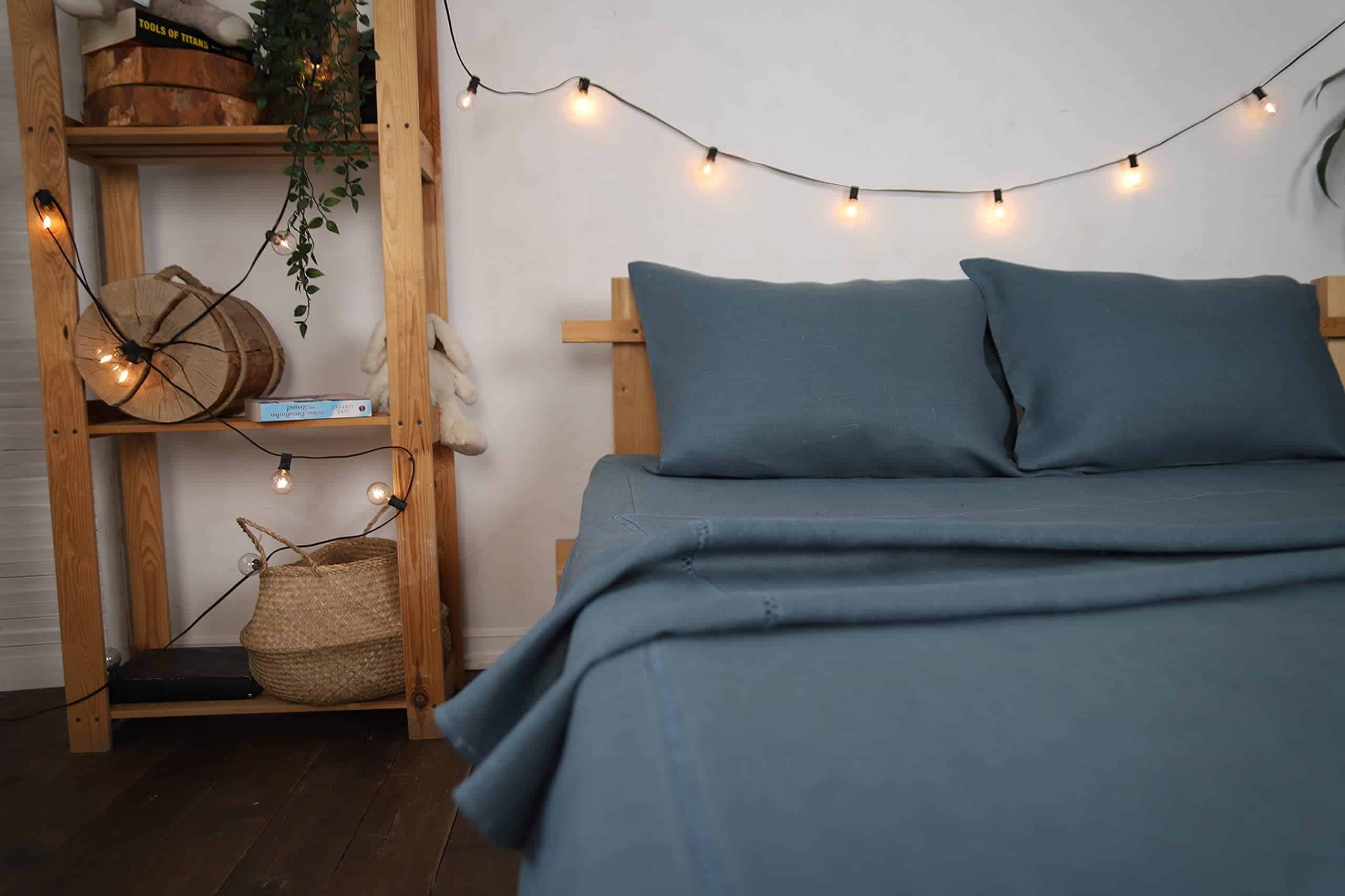 Juego de Sábanas y Fundas de Almohada de Lino -Azul Laguna