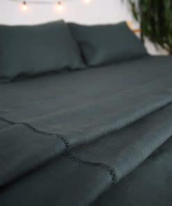 Hecho de lino de alta calidad europeo, cultivado y cosechado de manera respetuosa con el medio ambiente en Europa. Nuestros productos están fabricados en Europa y exportados desde Europa. Nuestra sábana tiene un patrón único hecho a mano, que proporcionará una sensación adicional de comodidad para tu dormitorio. SIENTE LA DIFERENCIA – Tener el juego de sábanas correcto es LA REGLA NÚMERO UNO y este hecho de tela transpirable de lino europeo 100% ecológico ayuda a regular la temperatura corporal mientras duermes, lo que significa que no sudarás, por lo que te sentirás cálido en invierno y fresco en verano. EL JUEGO DE SÁBANAS ADECUADO – ¿Quieres mejorar tu ropa de cama y añadir algunas fundas de almohada y sábanas más a tu cama? Tenemos exactamente lo que necesitas 1 SÁBANA BAJERA que cuenta con UNA BANDA ELÁSTICA que mantendrá bien el colchón, 1 SÁBANA PLANA que es muy útil para colocar entre tú y tu cama, y 2 FUNDAS DE ALMOHADA para un buen sueño personalizado. Este juego de sábanas de lino es increíblemente duradero y te servirá durante años. (Calidad del lino: 220 GSM – gramos por metro cuadrado). INCLUYE: Twin 1 x Sábana Plana 66″ x 96″, 1 x Sábana Bajera 39″ x 76″ x(10-14)», 1 x Fundas de Almohada 20″ x 30″; Full: 1 x Sábana Plana 81″ x 96″, 1 x Sábana Bajera 54″ x 76″ x(10-14)», 2 x Fundas de Almohada 20″ x 30″; Queen: 1 x Sábana Plana 90″ x 102″, 1 x Sábana Bajera 60″ x 80″ x(10-14)», 2 x Fundas de Almohada 20″ x 30″; King: 1 x Sábana Plana 108″ x 102″, 1 x Sábana Bajera 78″ x 80″ x(10-14)», 2 x Fundas de Almohada 20″ x 40″