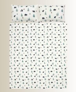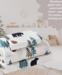 Juego de sábanas y fundas de almohada decorativas estilo rústico de oso, árbol de pino y piña, ultra suaves para cabaña o alojamiento. Juego de 4 piezas para cama King/Queen: Incluye una sábana ajustable, una sábana plana y dos fundas de almohada. Tacto sedoso agradable con material ultra suave de microfibra de poliéster 100% de 95 GSM transpirable. Ideal para todas las estaciones. Instrucciones de cuidado: Lavar a máquina en agua fría, secar a fuego lento. No usar lejía, lavar en seco o planchar.