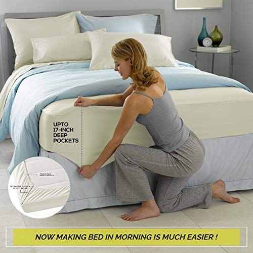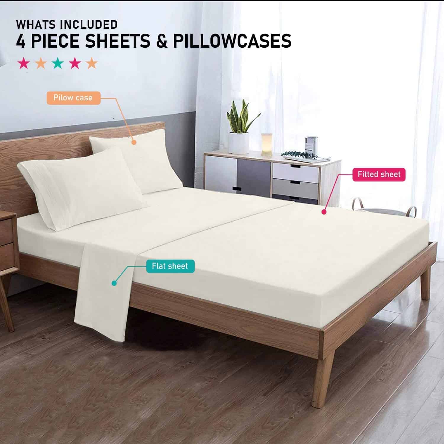 3. Hay un juego de 2 sábanas y 2 fundas de almohada diseñado con sábana bajera con un borde elástico que se ajusta fácilmente a colchones de hasta 17 pulgadas de profundidad.