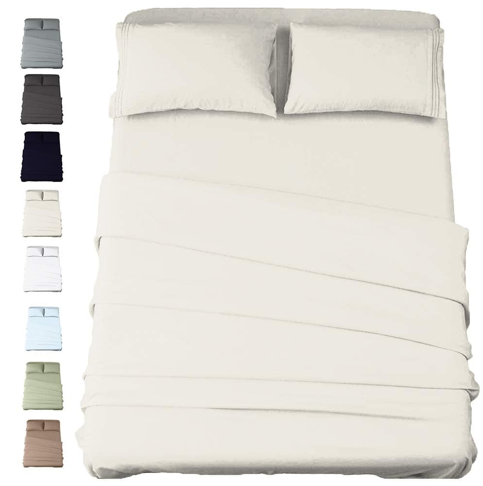 4. Cada paquete contiene un set de 4 piezas de ropa de cama que incluye 1 sábana plana de tamaño queen que mide 90 pulgadas x 102 pulgadas; 1 sábana ajustable totalmente elástica que mide 60 pulgadas x 80 pulgadas + 15 pulgadas con bolsillos extra profundos elásticos que pueden adaptarse fácilmente a bolsillos de hasta 17 pulgadas de profundidad; 2 fundas de almohada queen que tienen medidas estándar de 20 pulgadas x 30 pulgadas.