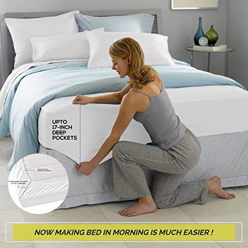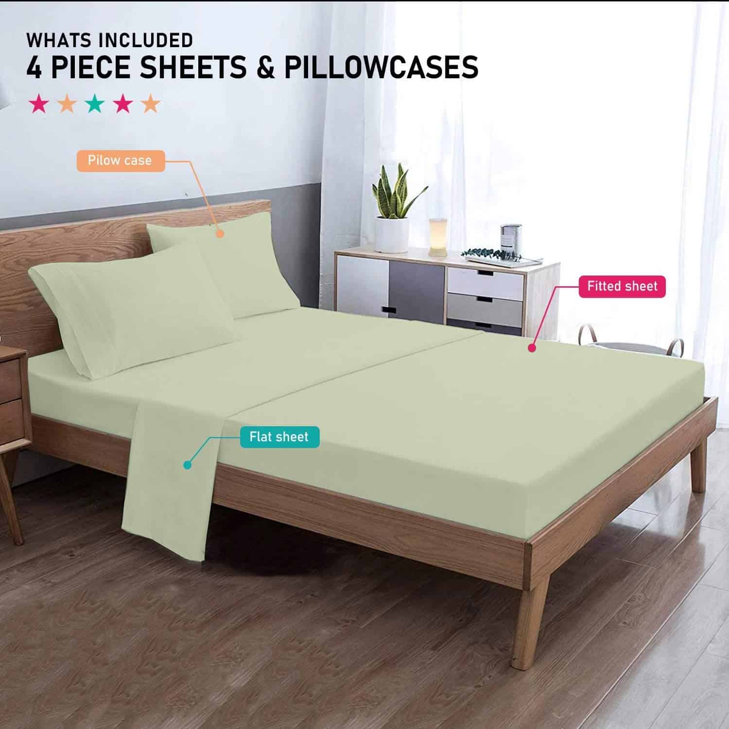3. Este juego de 2 sábanas y 2 fundas de almohada está diseñado con una sábana bajera ajustable con un borde elástico que puede adaptarse fácilmente a colchones de hasta 17 pulgadas de profundidad.