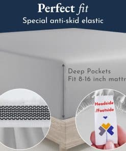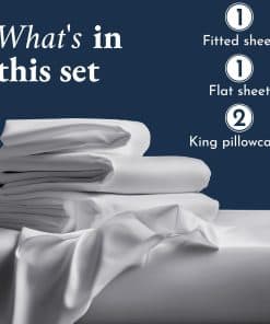 2. Confort Perfectamente Adaptado: Este juego de sábanas cal king de algodón incluye una sábana plana generosamente dimensionada (110″W x 104″L), una sábana ajustable de bolsillo profundo (72″W x 84″L) y 2 fundas de almohada king (21″W x 36″L) con cierres de sobre. La sábana ajustable cuenta con elástico antideslizante para un ajuste ceñido en colchones de hasta 16 pulgadas de profundidad, mientras que los indicadores de lado de la cabeza/lado del pie garantizan un fácil hacer la cama.