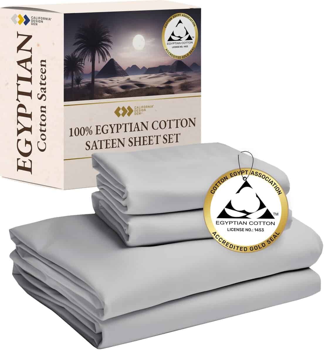 3. Prestigioso Sello de Autenticidad de Oro: Certificadas con el Sello de Oro Oficial de la Asociación del Algodón Egipcio, nuestras sábanas grises claro están hechas con el mejor algodón de fibra larga para una tela suave, duradera que resiste las arrugas y se mantiene prístina con el tiempo.