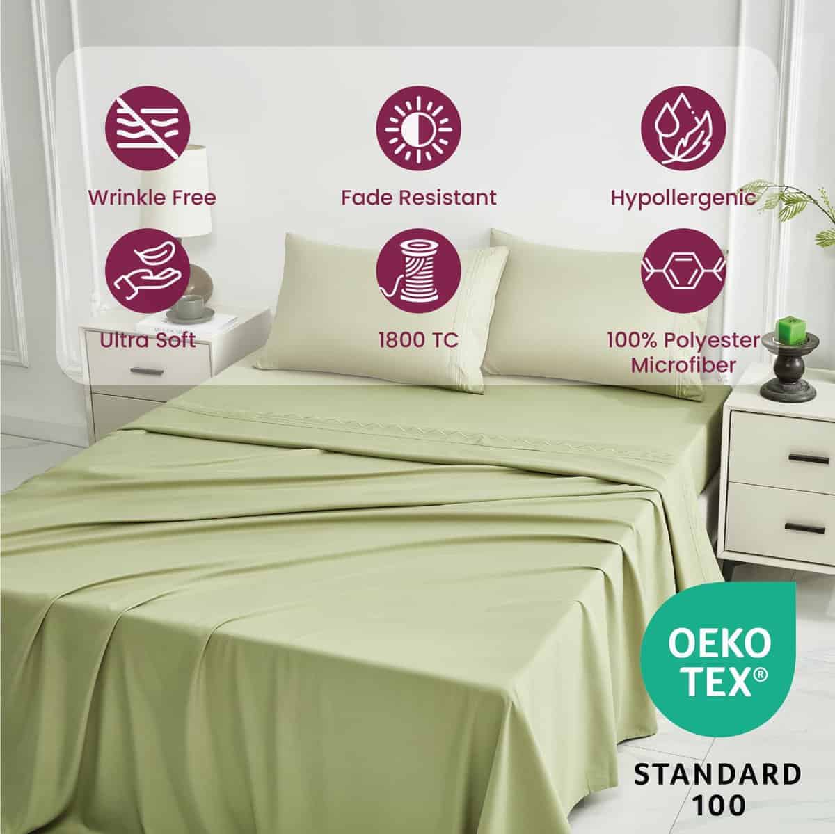 5. Sábanas resistentes al decoloramiento y refrescantes: El color y la vitalidad del bordado de nuestro juego de sábanas permanecen fieles, lavado tras lavado, garantizando una belleza duradera. Ideal para personas con alergias, nuestras sábanas son refrescantes, hipoalergénicas, proporcionando estilo y comodidad para un sueño saludable y tranquilo.