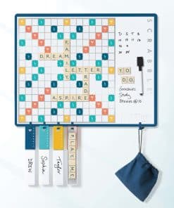 Las fichas de letras de SCRABBLE de madera con respaldo magnético hacen que sea fácil jugar y divertido deletrear mensajes y compartirlos con tus amigos. ¿Falta de tiempo? Juega una palabra, cuelga tus letras en los convenientes ‘bastidores’ de fichas y luego es el turno de tu oponente para jugar a su ritmo. Añade estilo a cualquier habitación de residencia, dormitorio o área común donde todos puedan unirse al juego.