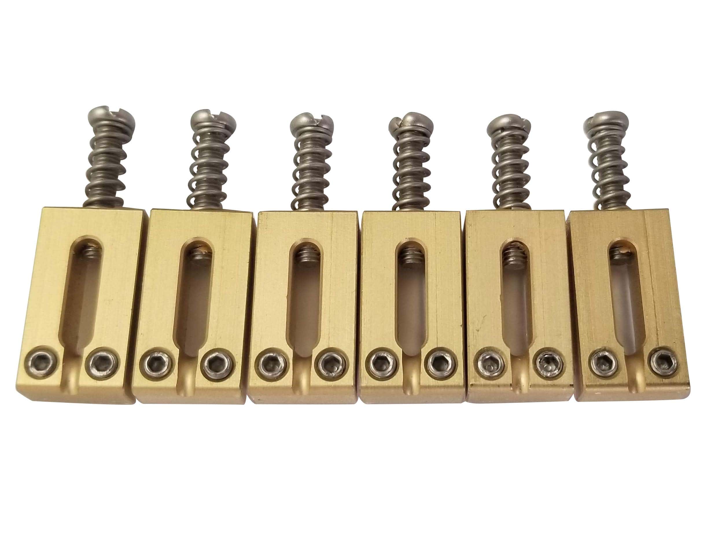 Selletas de Puente de Guitarra en Latón Macizo para Fender Stratocaster o Telecaster. Este set de selletas está diseñado para ofrecer una mayor precisión en la entonación de tu guitarra eléctrica. Fabricadas en latón macizo con una mecanización precisa, estas selletas garantizan un ajuste perfecto en tu guitarra Fender Stratocaster o Telecaster. Con dimensiones de 20mm de longitud y 10.80mm de ancho, junto con el espaciado estándar, estas selletas se adaptan perfectamente al ancho de las cuerdas para una óptima ejecución musical.