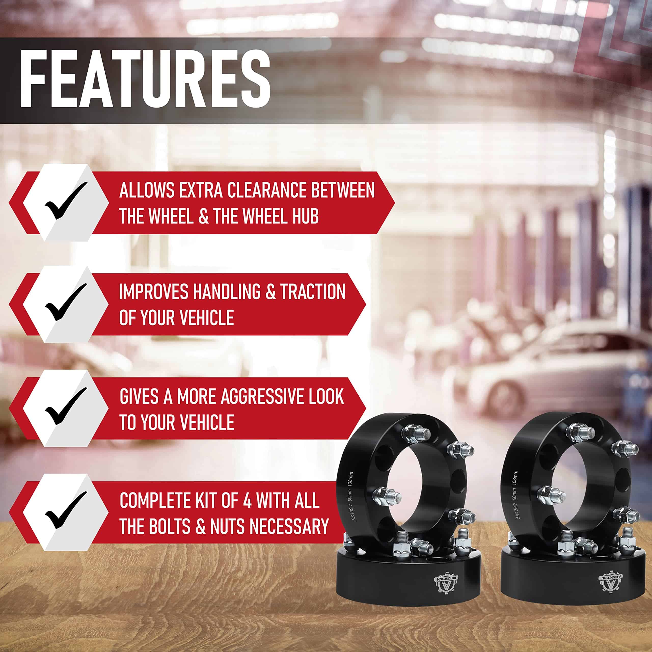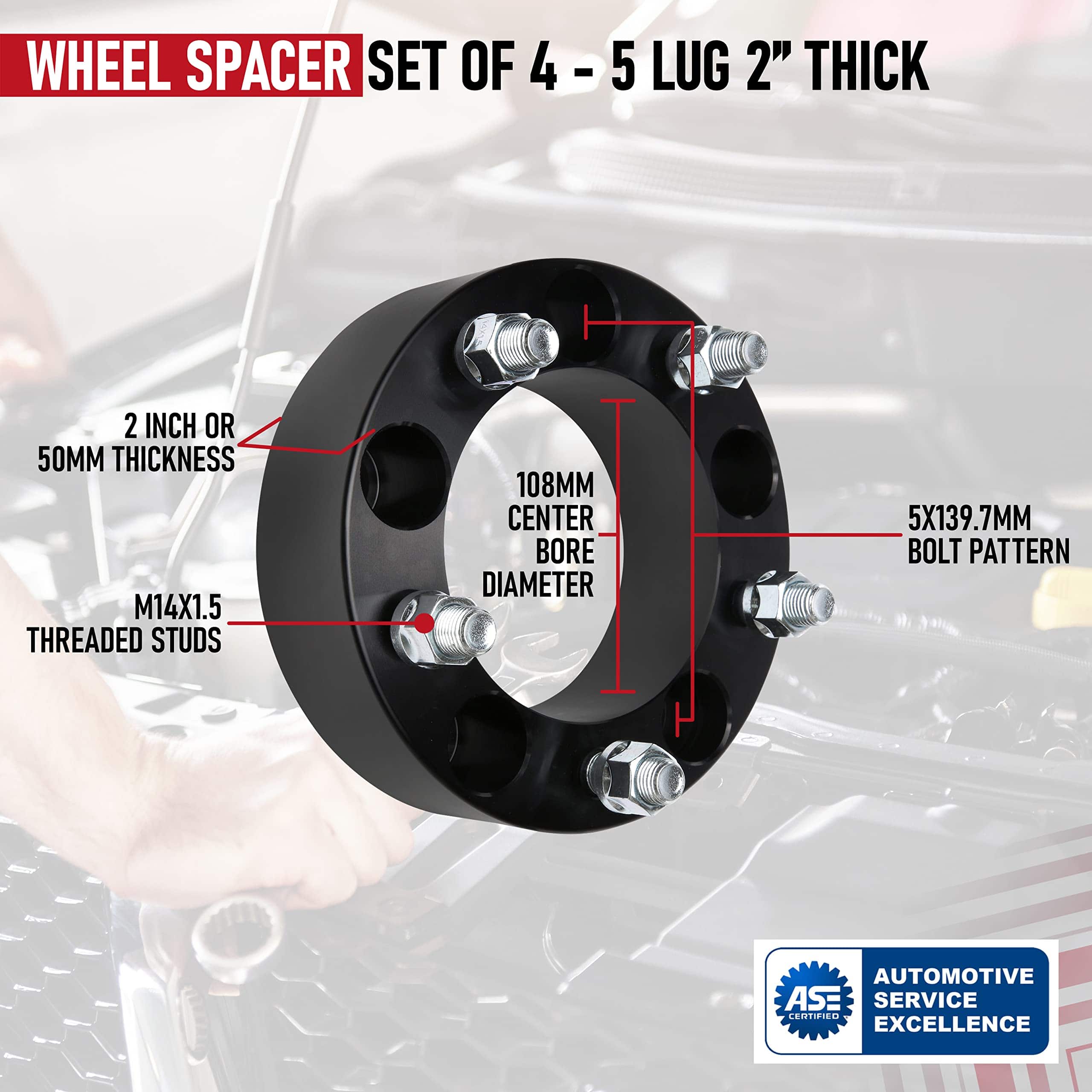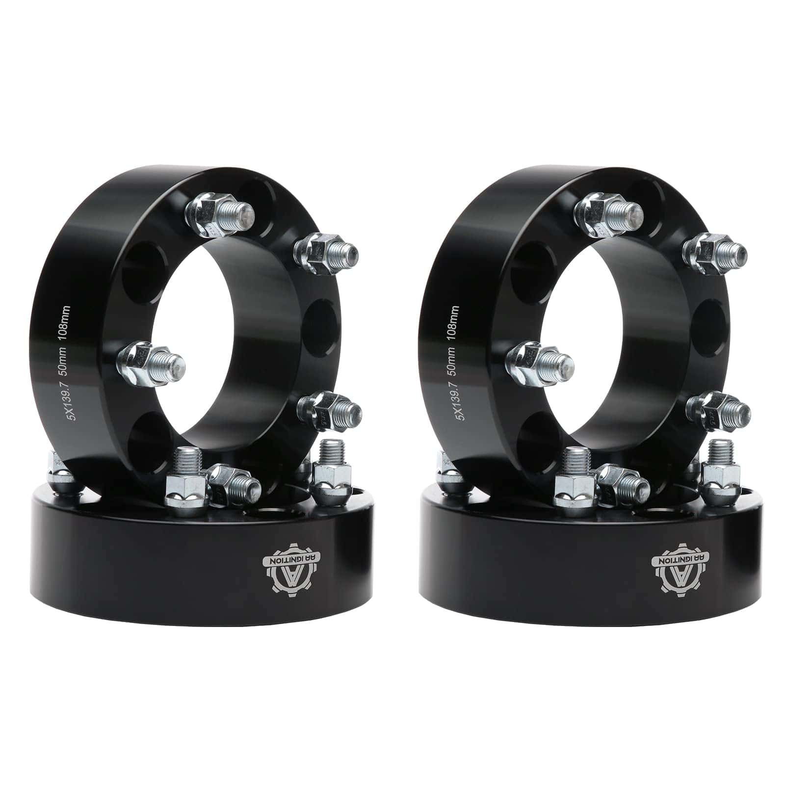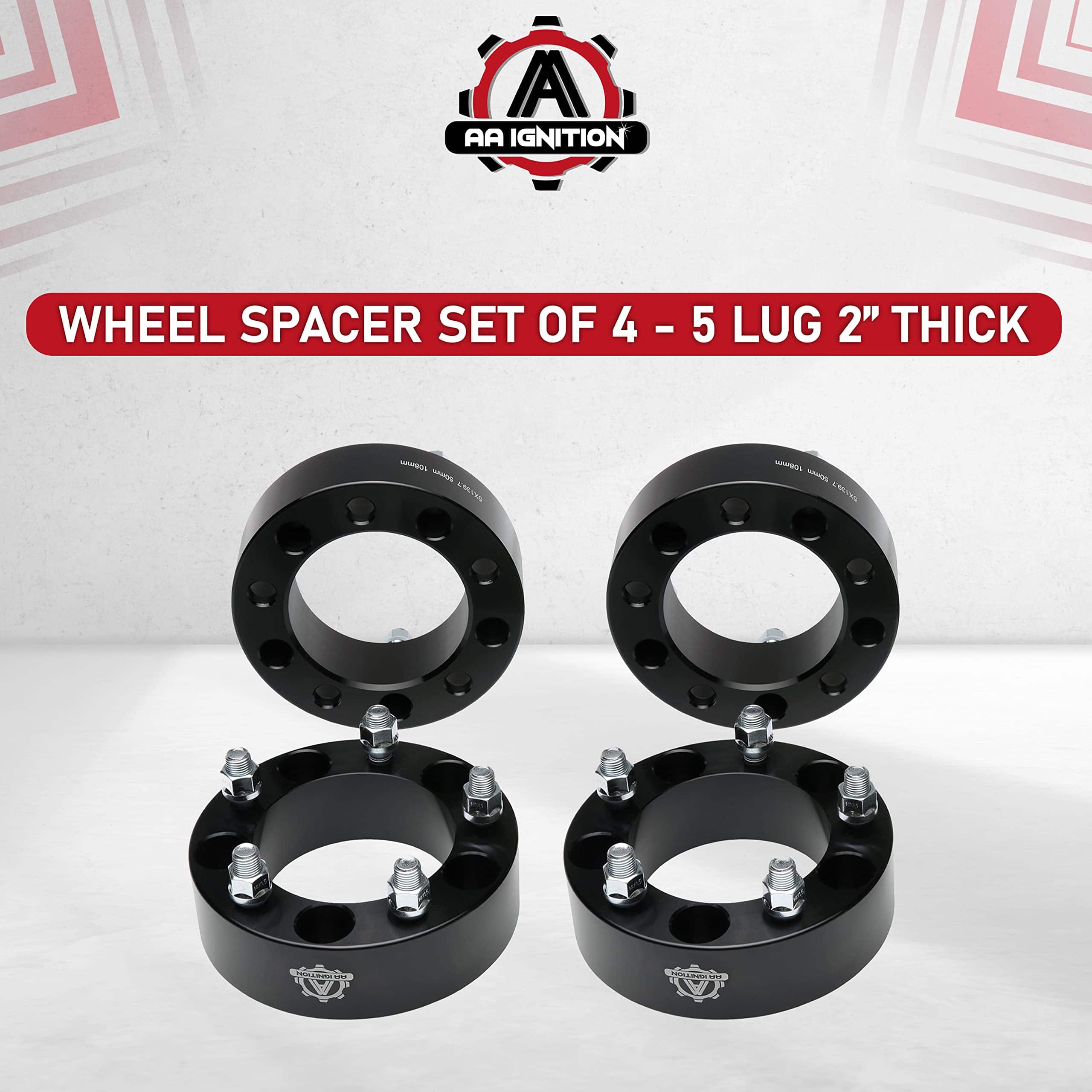 Juego de Separadores de Rueda AA Ignition Set de 4 Negro – 5 Pernos 2 pulgadas 50mm Forjados Reales 5×5.5 – Compatible con Dodge Ram 1500 2012, 2013, 2014, 2015, 2016, 2017, 2018 5×139.7mm, 108mm de diámetro de buje, Pernos M14x1.5. Este juego de separadores de rueda de 2 pulgadas permite una mayor separación entre la rueda y el ensamblaje del cubo de la rueda, lo que aumenta el desplazamiento y permite la instalación de neumáticos más grandes en el vehículo. Los separadores de rueda también mejoran el rendimiento de un vehículo en términos de manejo y tracción, ya que cuanto más lejos esté la rueda del ensamblaje del cubo, mejor será su agarre.