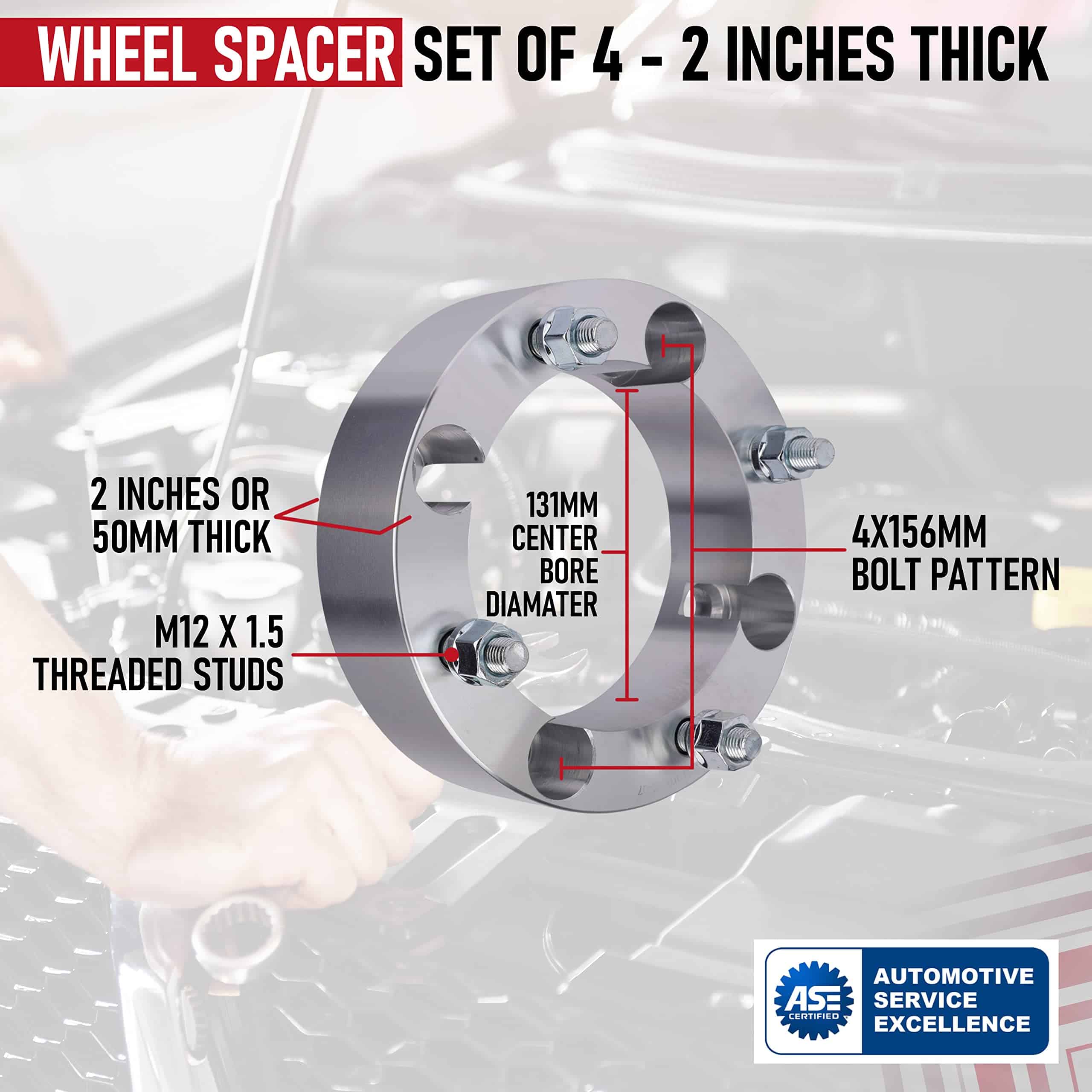 Este juego de 4 separadores de rueda de 2 pulgadas de grosor con un patrón de perno 4x156mm permite un espacio adicional entre la rueda y el ensamblaje del cubo de la rueda aumentando el desplazamiento que permite un aspecto más agresivo para tu ATV o UTV.