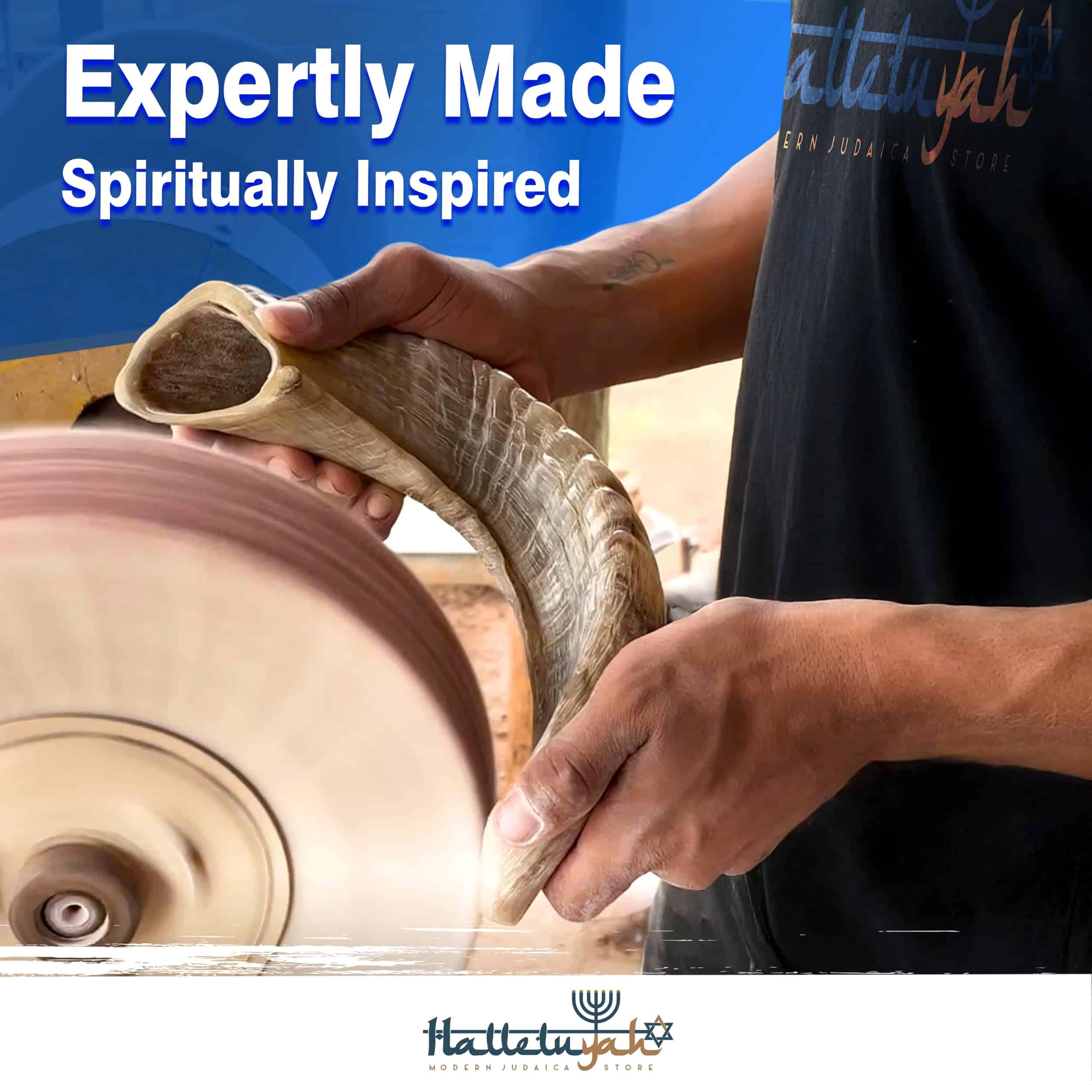 1. Elaborado por las Manos de la Tradición: Los shofares de HalleluYAH son hechos a mano en Israel, combinando la artesanía antigua con un compromiso con la autenticidad. Cada cuerno de carnero es moldeado, pulido y perfeccionado por artesanos expertos, honrando una tradición sagrada transmitida a lo largo de generaciones.