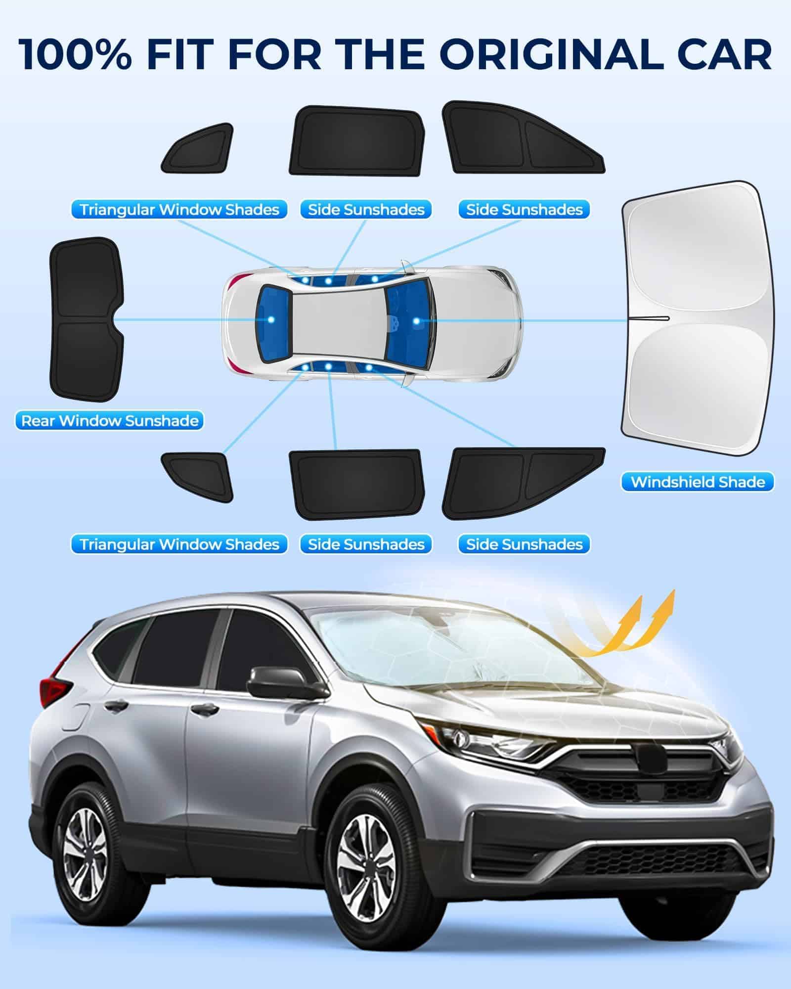 2. Protección UV Fuerte: El juego de 8 piezas de cubierta de ventana para CRV de JASVIC bloquea el 99% de los rayos UV con poliéster altamente reflectante de 420D, protegiendo el interior de su vehículo contra el daño solar y manteniendo su coche más fresco.