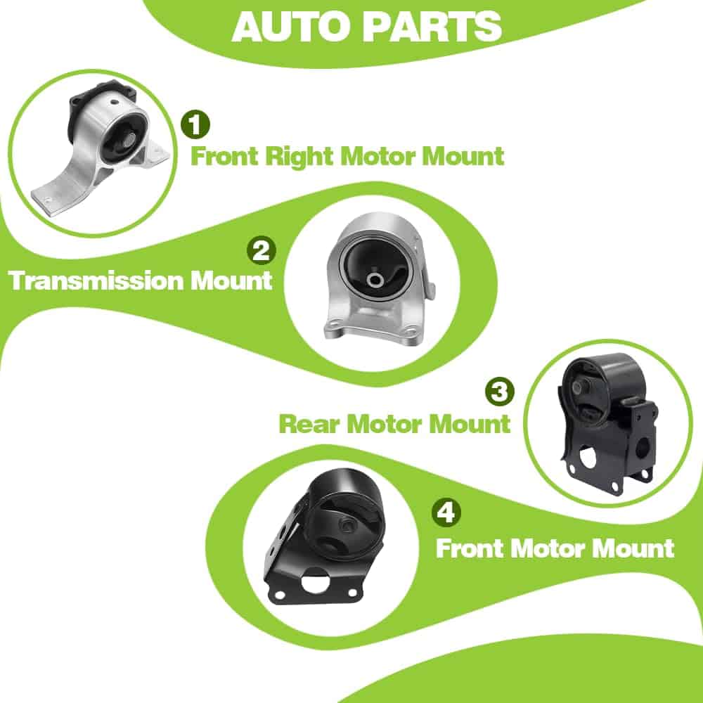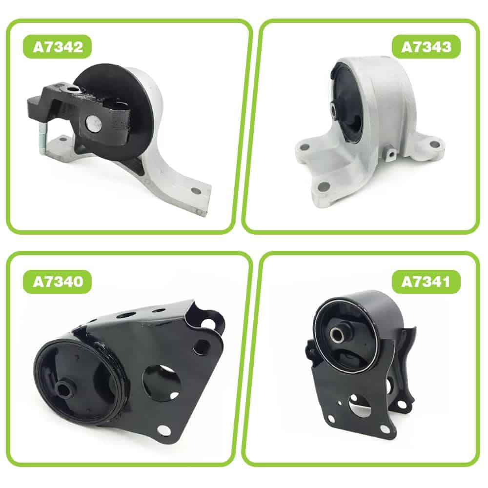 2. Juego completo de soportes de motor: Este juego de 4 piezas incluye el soporte frontal A7340, el soporte trasero A7341, el soporte de transmisión A7343 y el soporte derecho A7342. Es una solución confiable para reemplazar soportes de motor y de transmisión gastados o dañados.