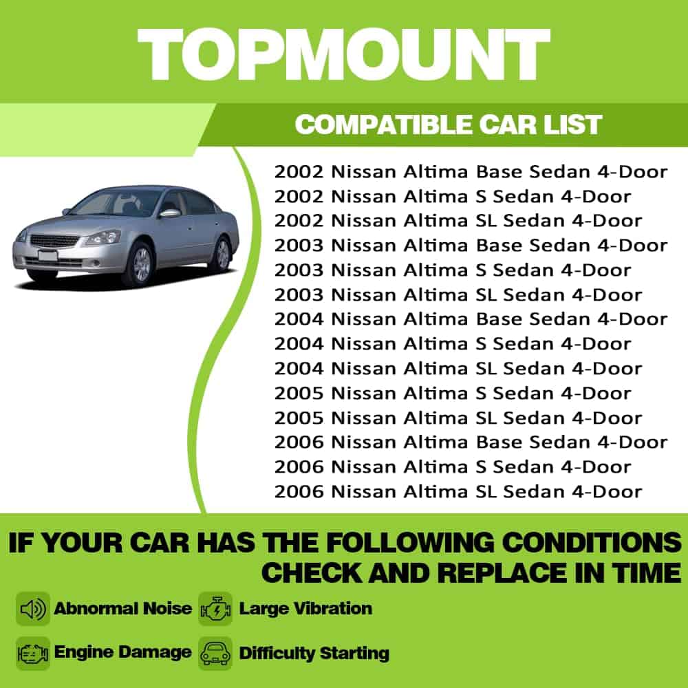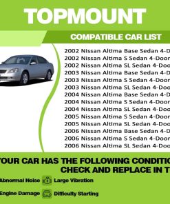 1. Ajuste perfecto para Nissan Altima: Compatible con modelos de Nissan Altima 2.5L Transmisión Automática del 2002 al 2006, este juego de soportes de motor está diseñado para un reemplazo perfecto, asegurando un rendimiento y estabilidad óptimos.
