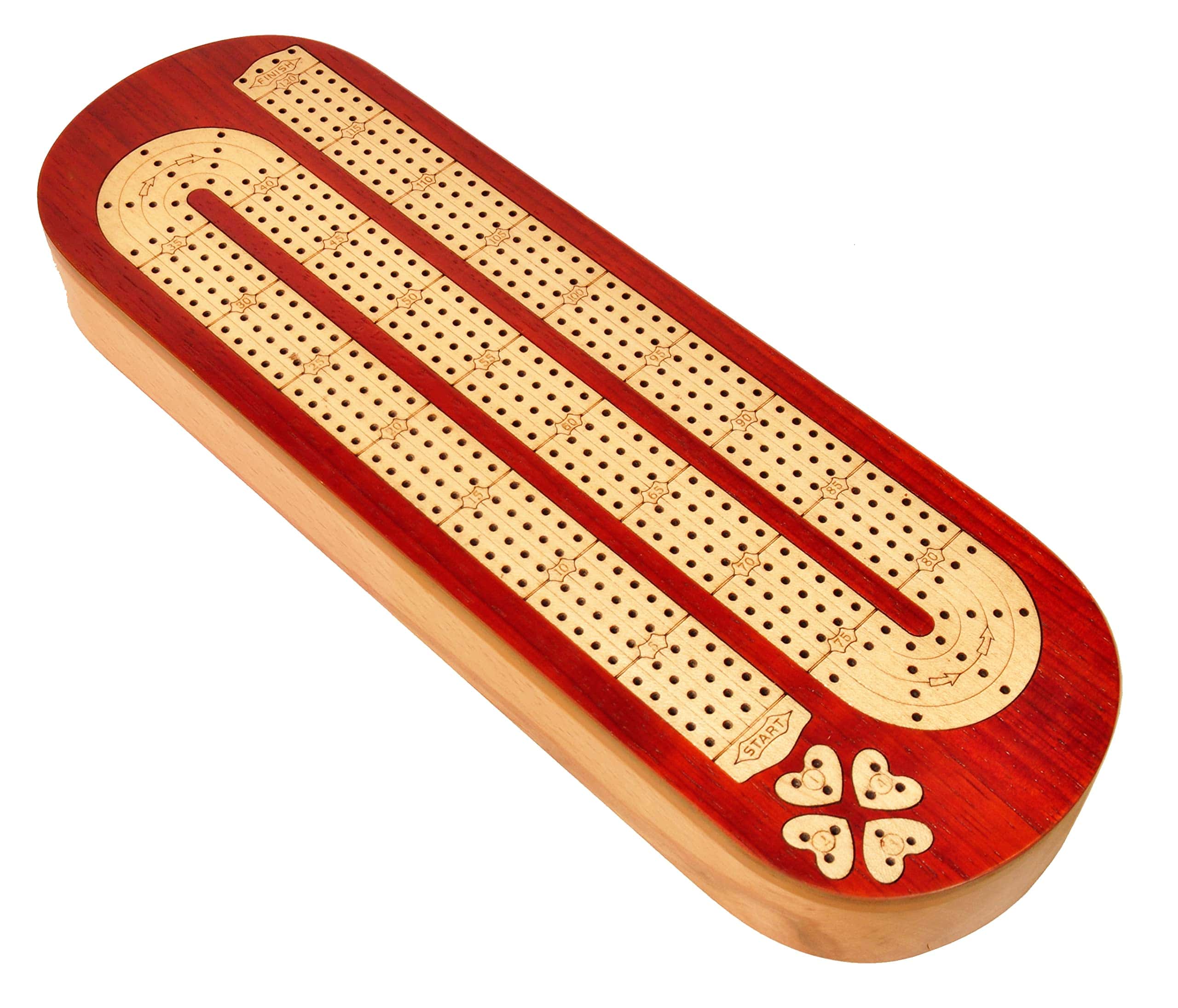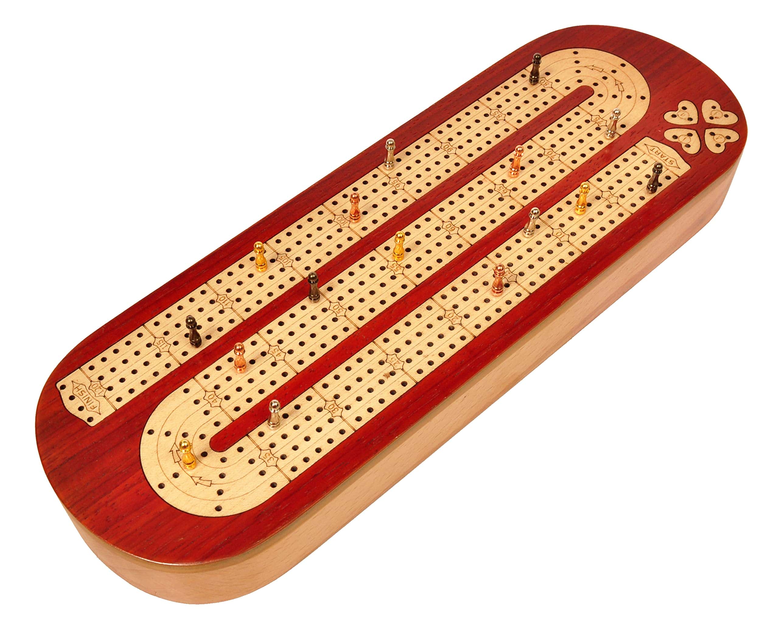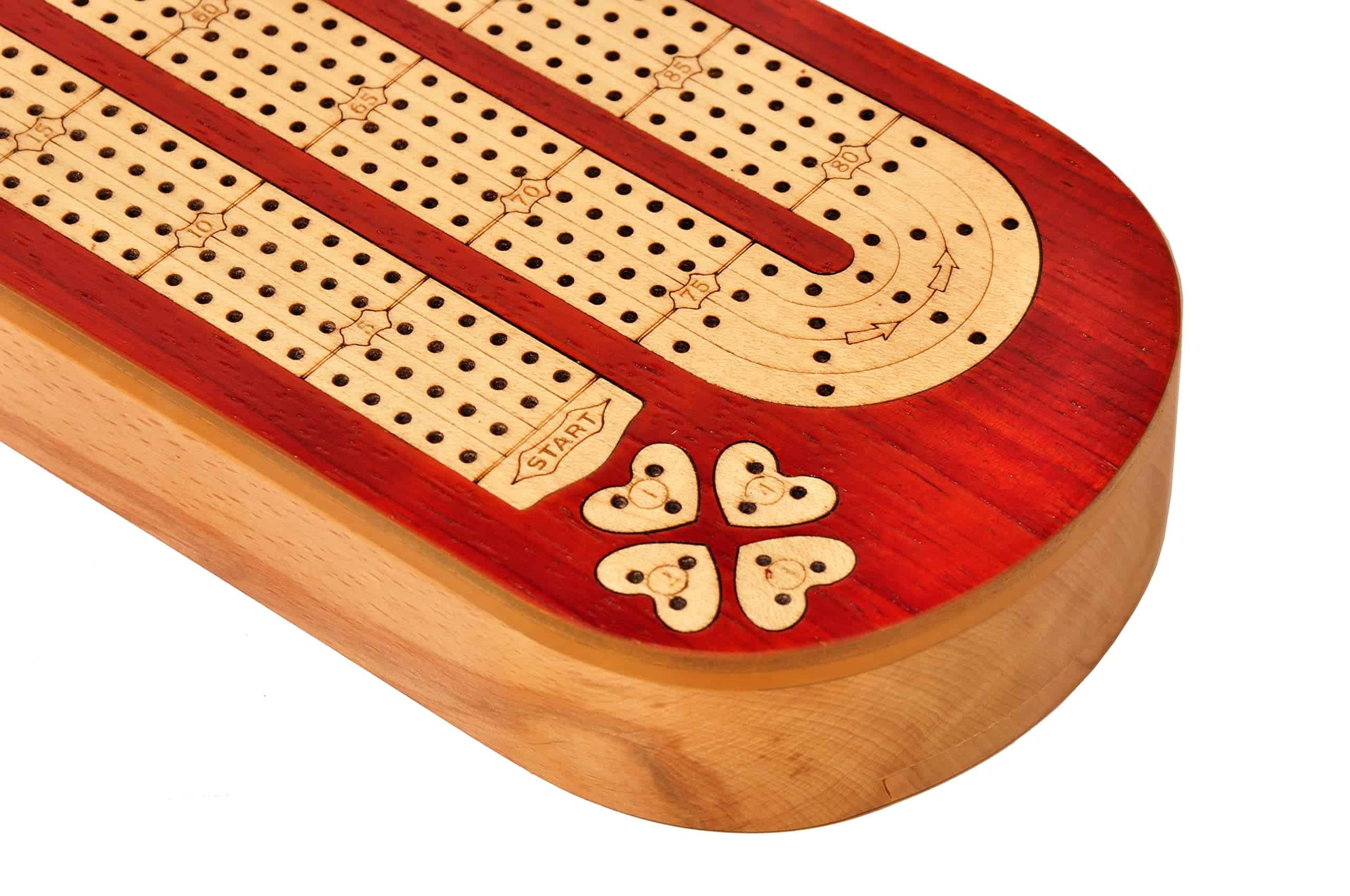 Palm Royal Handicrafts presenta un tablero continuo de cribbage de 4 pistas de madera con incrustaciones de Bloodwood y Maplewood.