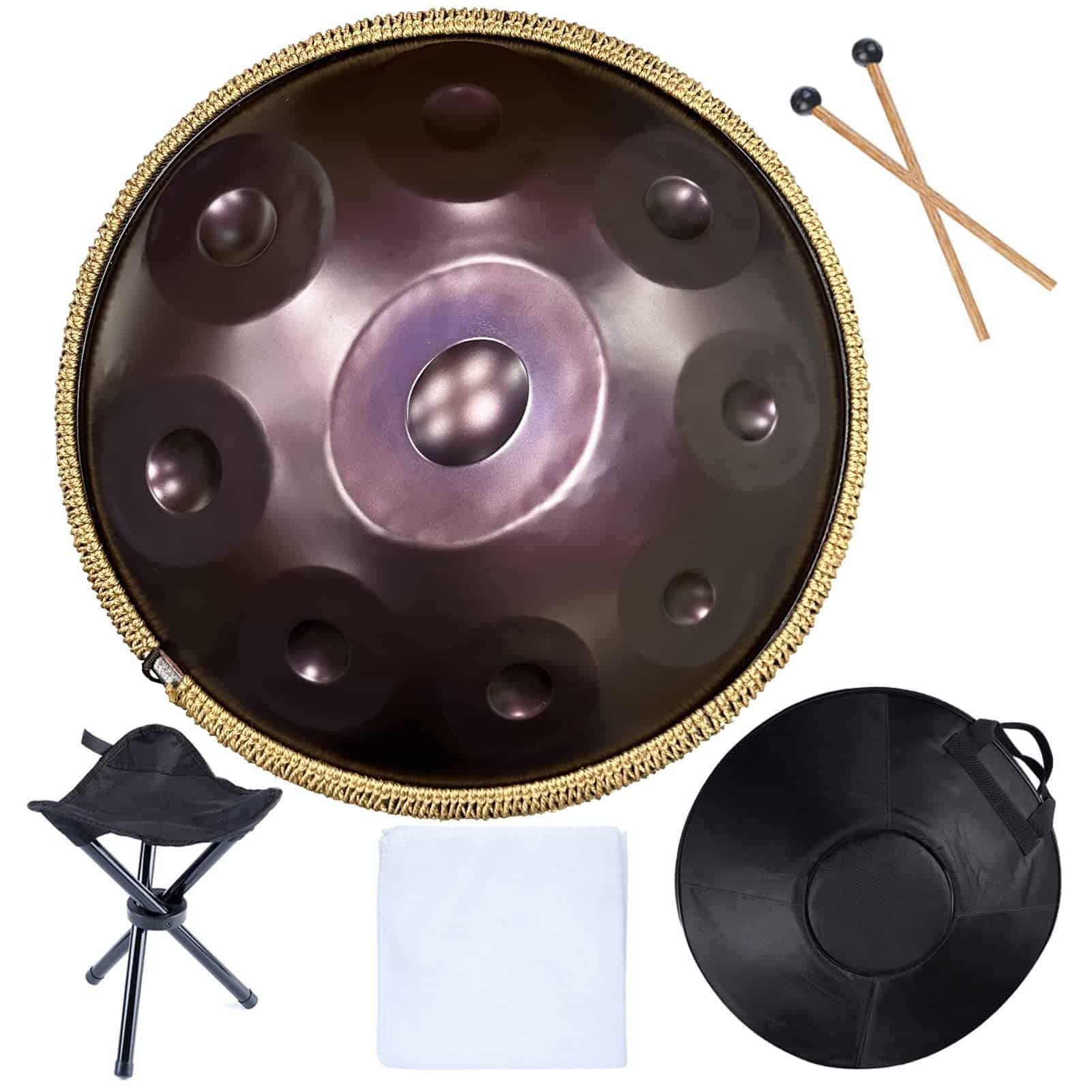 ¿Por qué elegir el handpan LingTing? Calidad excepcional: construido con material de acero de nitrógeno para durabilidad y solidez. Tras el tratamiento térmico, es resistente al desgaste y al óxido. Nuestros tambores de mano son hechos a mano, con huellas de golpes manuales. Accesorios completos: el instrumento handpan incluye 1 bolso de transporte, 1 par de baquetas, 1 soporte de handpan, 1 paño sin polvo. El bolso incluido hace que tu handpan sea más conveniente de almacenar y transportar. Todas las notas tienen vibraciones de resonancia perfectas, cada nota verificada con un afinador para minimizar fluctuaciones. Especificaciones: Diámetro: 0.46 m. Material: metal. Tamaño del paquete: 520 x 510 x 225 mm. Peso del paquete: 9 tonos: 5.3 kg. Lista de paquetes: 1 handpan, 1 paquete, 1 par de baquetas, 1 toalla, 1 soporte.
