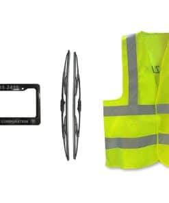 5. Kit de Accesorios Completo: Incluye un marco para placa de licencia, 2x limpiaparabrisas duraderos de 22″ para una visibilidad clara en todas las condiciones climáticas, y un chaleco reflectante de seguridad para una seguridad mejorada en carretera y situaciones de emergencia.
