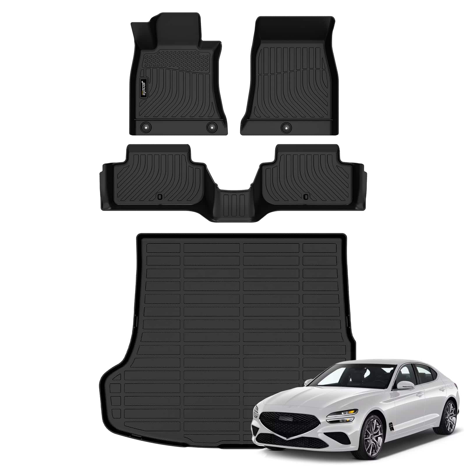 Jenofa tapetes de coche y tapetes de piso para G70 RWD están fabricados con materiales de alta calidad de elastómero termoplástico (TPE) resistentes al agua, ofreciendo un equilibrio perfecto entre suavidad y durabilidad. No es necesario preocuparse por las arrugas causadas por el envío después de recibir el tapete, simplemente coloque el tapete en un lugar cálido (o use un secador de pelo) y su forma personalizada se restaurará. Disfrute de una protección duradera para su G70 RWD, sin importar el clima. Con un diseño elegante y funcional, el juego de tapetes de Jenofa está diseñado para una instalación sin esfuerzo e integración impecable. Con un color negro elegante y estética minimalista, mejoran el aspecto general mientras maximizan la practicidad con el interior de su G70 RWD.