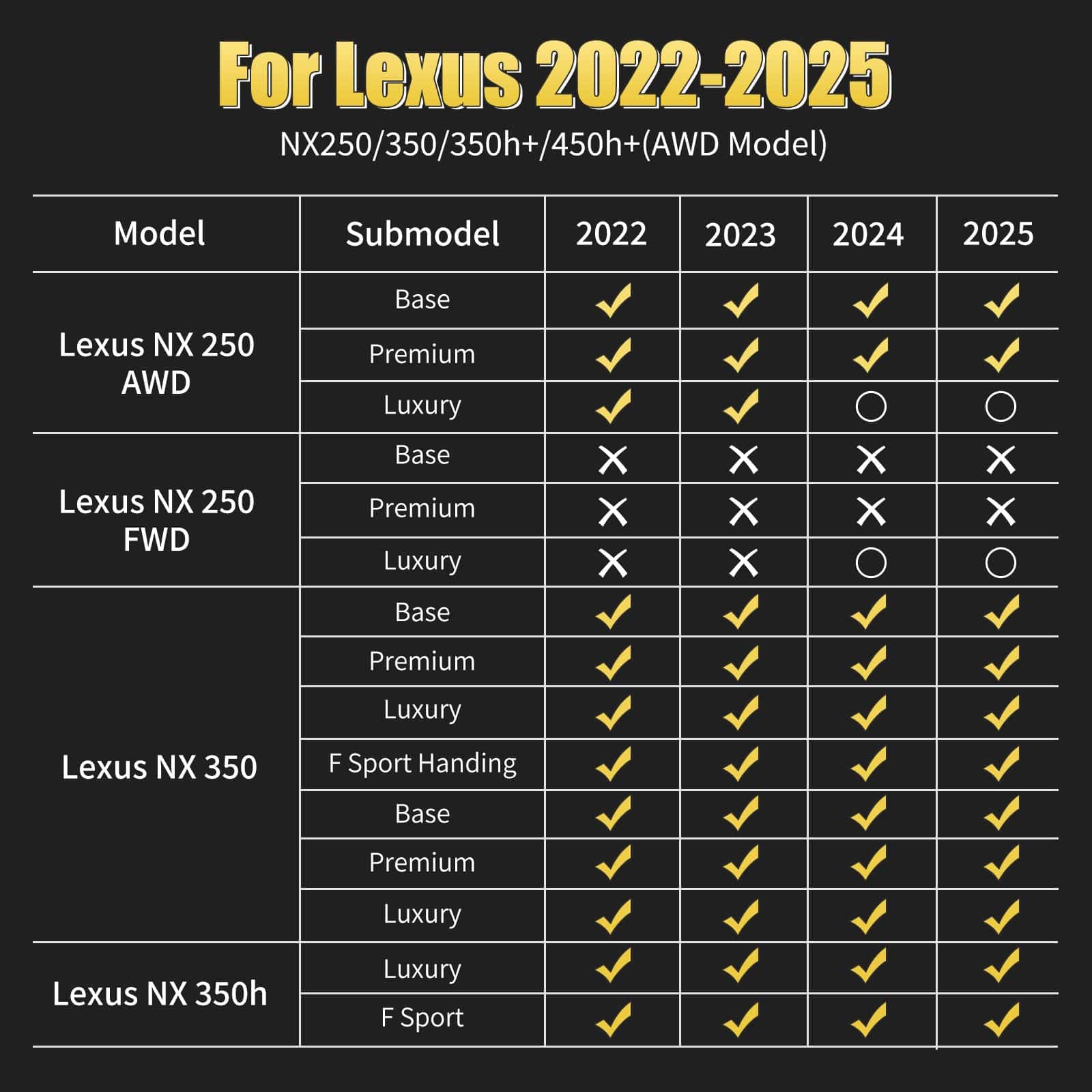 Este juego de tapetes y forro de maletero Jenofa ha sido especialmente diseñado para el modelo NX 2022-2025, incluyendo las variantes NX250 AWD, NX350, NX350h y NX450h+. Con la tecnología de escaneo láser 3D, estos tapetes ofrecen un ajuste preciso que se adapta perfectamente a los datos originales de tu NX, asegurando una protección completa para el piso original de tu auto y el área de carga. Los materiales premium utilizados, elastómero termoplástico (TPE), garantizan una combinación ideal de suavidad y durabilidad, brindando resistencia al calor, frío y desgaste. Aunque duraderos, estos tapetes son fáciles de limpiar, simplemente necesitas un paño húmedo o un enjuague rápido. Su diseño elegante y funcional no solo mejora la apariencia de tu NX, sino que también maximiza la practicidad en el uso diario. ¡Protege tu automóvil mientras le das un toque de estilo con este juego de tapetes y forro de maletero Jenofa!
