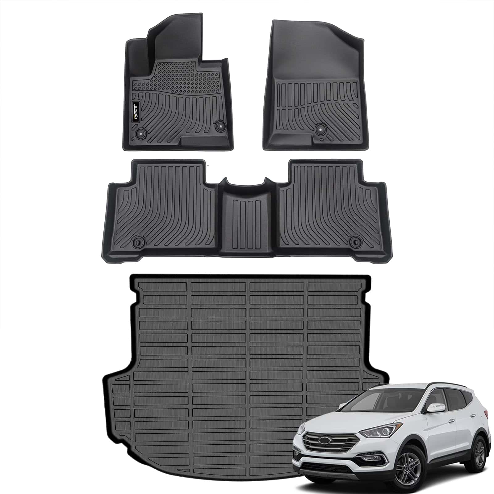 La tecnología de escaneo láser 3D garantiza un ajuste exacto a los datos originales de Santa Fe, asegurando un ajuste cómodo y maximizando la protección completa para el piso original de su automóvil y el área de carga. Los tapetes de carga y los tapetes Jenofa para Santa Fe están construidos con materiales de elastómero termoplástico (TPE) de alta calidad, respetuosos con el medio ambiente, ofreciendo un equilibrio perfecto entre suavidad y durabilidad. No hay necesidad de preocuparse por las arrugas causadas por el envío después de recibir el tapete, simplemente coloque el tapete en un lugar cálido (o use un secador de pelo) y su forma personalizada se restaurará. Los tapetes para automóvil Jenofa están diseñados para resistir las condiciones más duras, resistiendo el calor, el frío y el desgaste. Las pruebas rigurosas garantizan que permanezcan intactos, sin grietas ni rizos. Disfrute de una protección duradera para su Santa Fe, sin importar el clima. Con el forro de piso Jenofa es fácil mantener limpio el área de carga y el piso de su Santa Fe. Lluvia, nieve, barro, hojas, arena, restos de comida y líquidos simplemente límpielos con un paño húmedo o quítelos para enjuagar y secar. Con su diseño de borde elevado, no tendrá que preocuparse por la lluvia o la nieve que se filtran en su automóvil durante el mal tiempo. El juego de tapetes Jenofa está diseñado para una instalación sin esfuerzo e integración perfecta. Presenta un elegante color noir y estética minimalista, mejorando el aspecto general mientras maximiza la practicidad con el interior de su Santa Fe.
