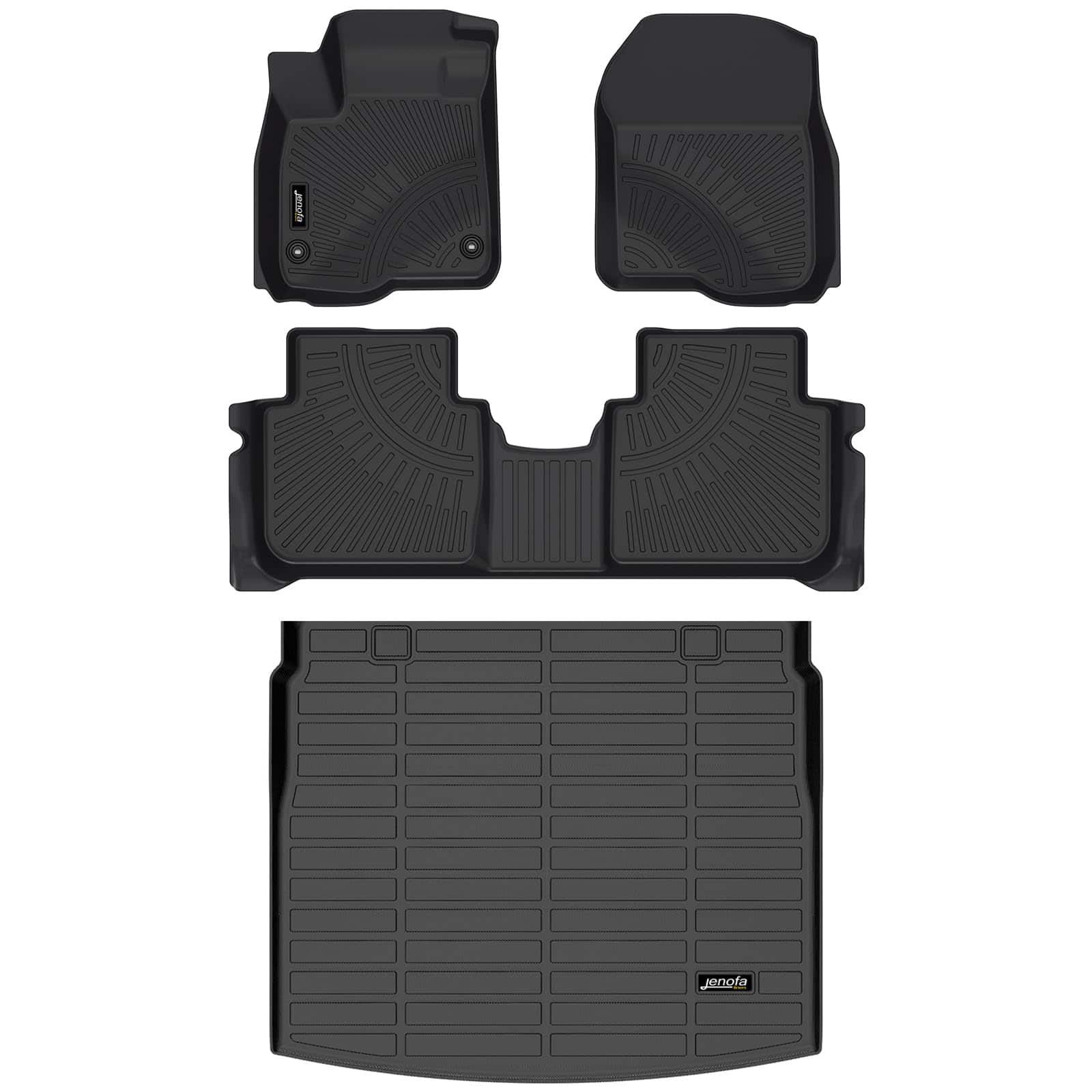 1. Ajuste preciso: Juego de tapetes Jenofa para Honda CR-V 2023-2025 incluye: 1 tapete para el asiento del conductor, 1 tapete para el asiento del pasajero delantero, 1 tapete para la segunda fila y 1 tapete para la carga. La tecnología de escaneo láser 3D asegura un ajuste exacto a los datos originales de Honda CR-V, garantizando un ajuste cómodo y maximizando la protección completa para el piso original de tu auto y el área de carga.