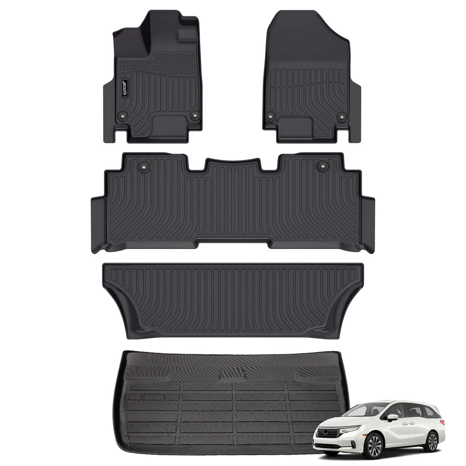 Juego de tapetes para piso y forro de carga Jenofa para Honda Odyssey 2018-2024 – Juego completo de tapetes para piso a medida para Odyssey – Juego de tapetes impermeables y duraderos para Odyssey 2018-2024 – Accesorios para Odyssey color negro.