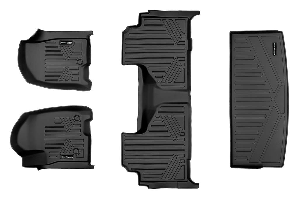 Con este juego de tapetes para pisos de dos filas y protector de carga detrás de la tercera fila, podrás mantener limpio el interior de tu Tahoe/Yukon 2021-2023 con asiento de segunda fila tipo banca. Diseñados para ofrecer protección contra todos los elementos, incluida la nieve, el barro, la arena y el agua salada, estos tapetes garantizan que tu vehículo esté siempre listo para enfrentar cualquier clima. El borde levantado y el diseño personalizado, logrado mediante tecnología innovadora de escaneo de vehículos, aseguran un ajuste perfecto que protege el piso de tela de su vehículo de los elementos, derrames y desorden. Además, estos tapetes son fáciles de limpiar, ya sea con una manguera o con un paño húmedo y jabón. Su diseño texturizado, antideslizante y elegante mejora la apariencia general del interior de tu coche. Hechos con una mezcla de plástico-goma y polietileno 100% reciclable, estos tapetes son una opción ecológica para mantener tu vehículo protegido y luciendo impecable.