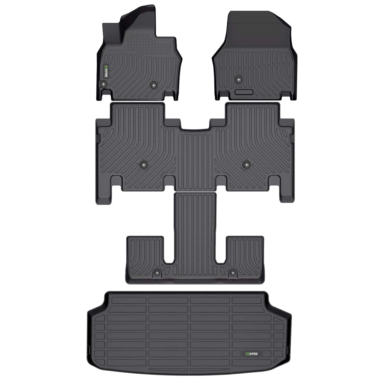 1. TAPETES A MEDIDA HAFIDI y forro de carga para Kia EV9 2024 2025 (6 Asientos). Incluye filas delanteras, traseras y tercera. Tecnología de escaneo láser 3D para obtener datos precisos del coche original y garantizar que el tapete de piso cubra completamente el piso del vehículo. Detalles como el acelerador y freno se tuvieron en cuenta en el proceso de diseño, lo que no afectará tu conducción.